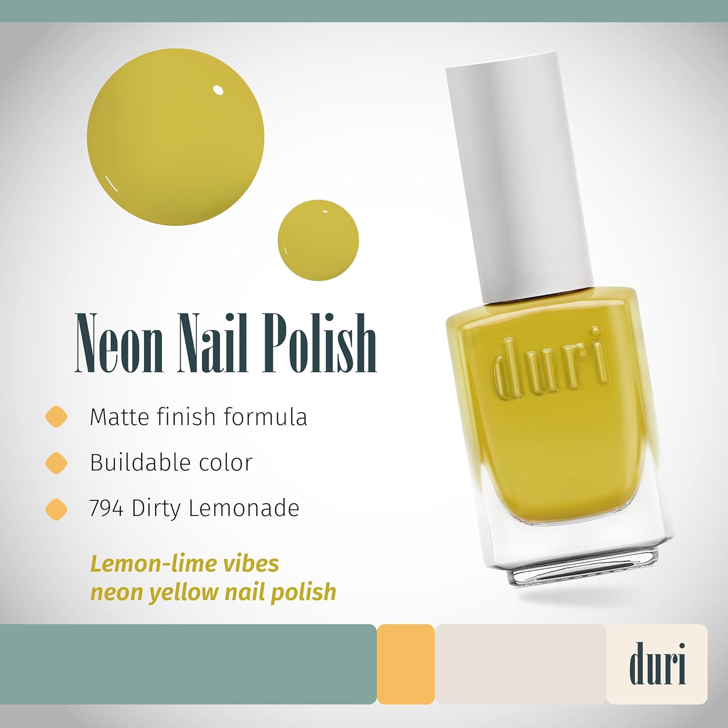 duri 794 Dirty Lemonade - Neon Yellow Nail Polish, Semi Matte, Full Coverage, 0.45 Fl Oz