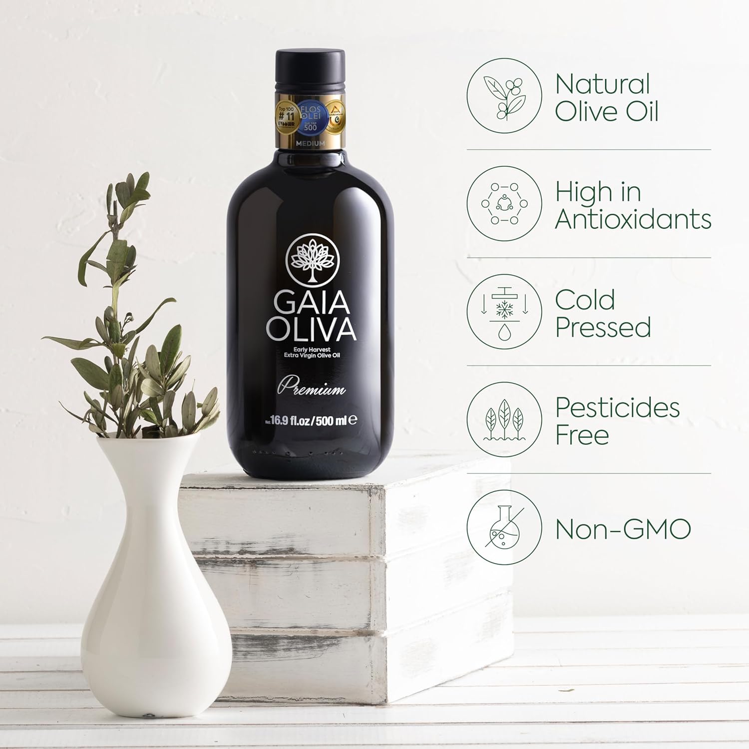 Gaia Oliva Cold Press Extra Virgin Olive Oil, Early Harvest Fruity Flavor Fresh Premium Olive Oil from Aegean Region, Aeite De Oliva Extra Virgen, Awardwinning - 500ml