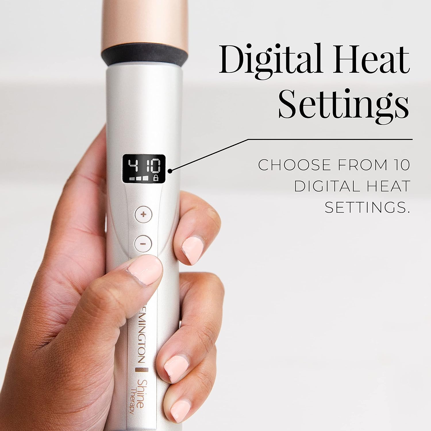 - 11 Digital Heat Settings with Temperature Lock: Use the setting that’s right for your hair type. For best results, style clean, dry hair and test a small section first. Use thin sections for tighter curls and thicker sections for looser curls.