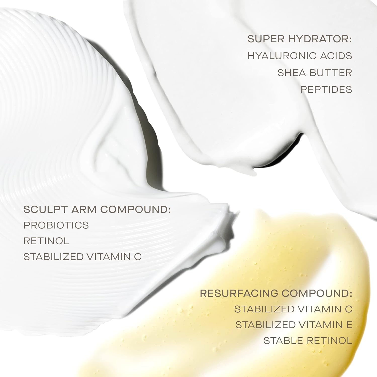 - Our three cult-favorite hero products in an exclusive getaway-ready kit: The essential Travel Trio features the Resurfacing Compound 15ml, SUPER Hydrator 15ml, and SCULPT Arm Compound 50ml.