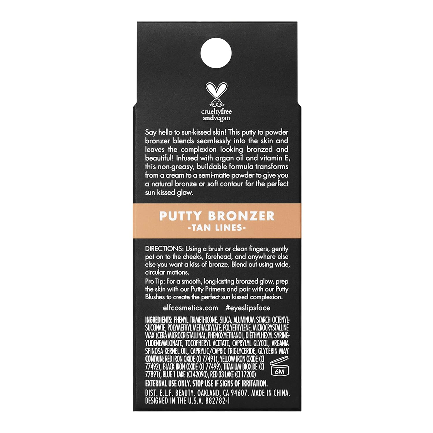 e.l.f. Putty Bronzer, Creamy & Highly Pigmented Formula, Creates a Long-Lasting Bronzed Glow, Infused with Argan Oil & Vitamin E, Tan Lines, 0.35 Oz