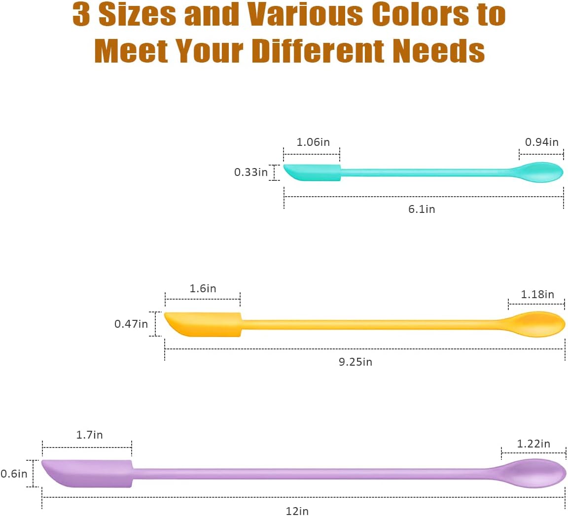 - ✅【 Product List】: You get two large 12-inch purple spatulas, two 9.25-inch yellow spatulas, and two mini 6.1-inch blue spatulas.