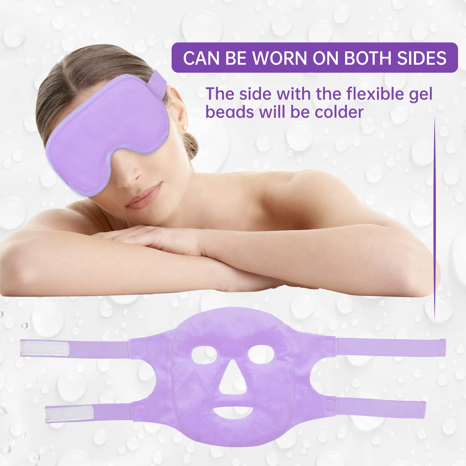 ZNÖCUETÖD Cooling Ice Face Eye Mask for Reducing Puffiness, Bags Under Eyes,Sinus,Redness,Pain Relief,Dark Circles, Migraine,Hot/Cold Pack with Soft Plush Backing (Purple(1* Eye Mask+1*Face Mask))