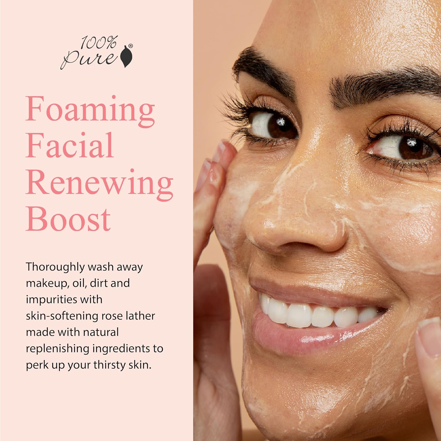 - FOAMING FACIAL RENEWING BOOST - Thoroughly wash the day away with the gentle aroma of rose in our non-stripping cleanser made with natural, skin-calming floral ingredients to perk up thirsty skin.