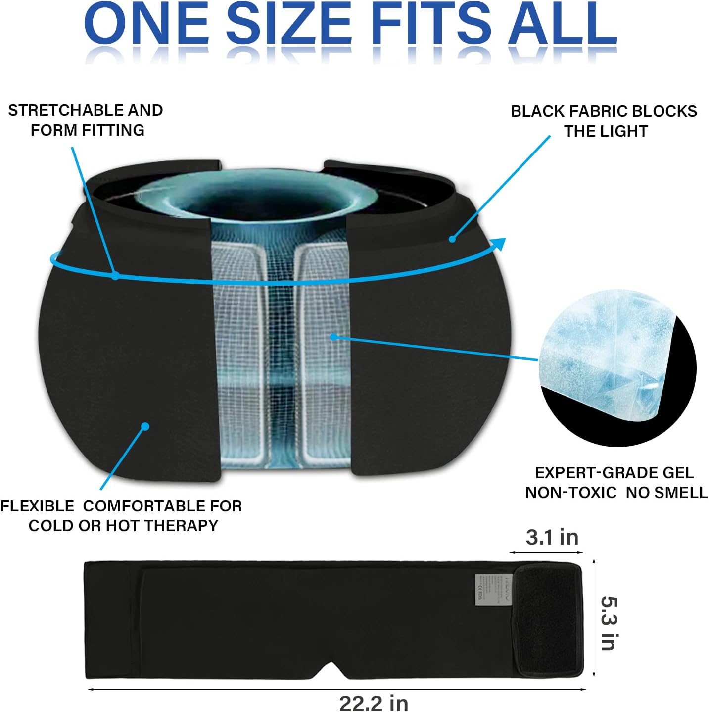 - Migraine ice head wrap is a stretchable compression migraine relief products with adjustable velcro that is guaranteed to perfectly fits every head, face & eye, a size fits all. Hair can be pulled through the top so that coldness and pressure can reach to scalp directly. The most flexible & soft headache ice pack provides 360° natural cooling migraine & headache relief cold compression therapy, slip-on design means no messy or uncomfortable ice pack inserts
