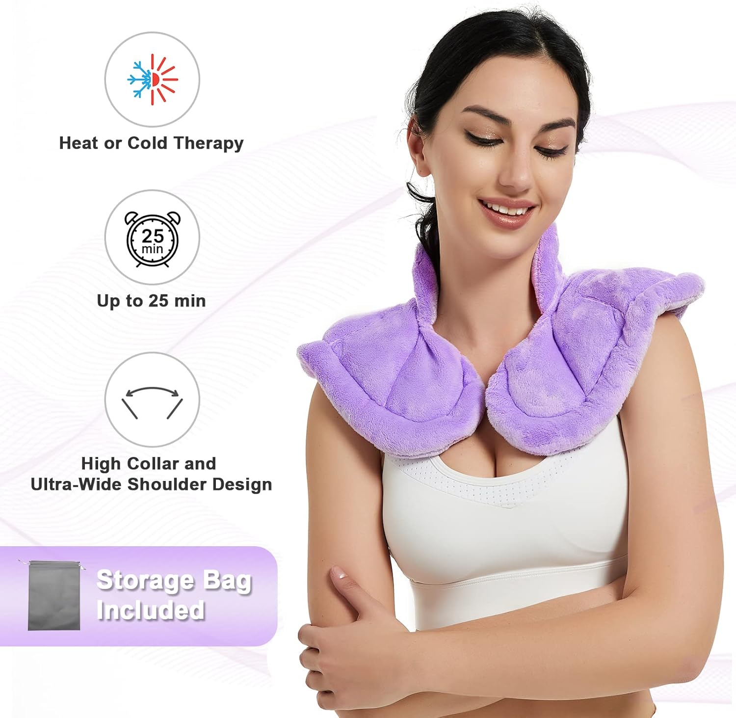 Neck Heating Pad Microwavable for Shoulders, Warmer Wrap Microwave Heating Pad for Neck and Shoulders for Pain Relief - Purple