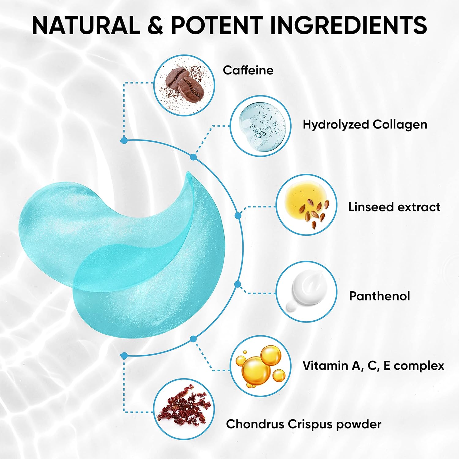 Under Eye Patches for Puffy Eyes, Dark Circles, Dull Skin - Natural Moisturizing Support - Help with Wrinkles and Fine Lines - Under Eye Mask with Hyaluronic Acid, Collagen, Caffeine - 30 Pairs