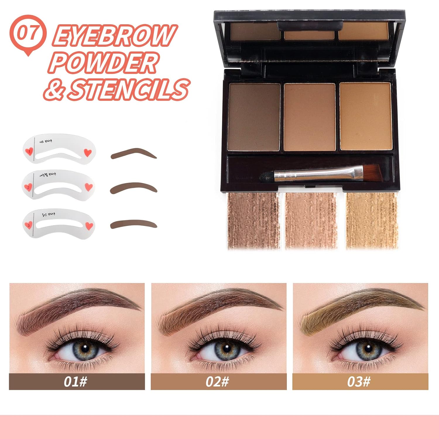 - 🎀【Easy to Use】 Eye shadow palette with a double-ended brush, which is easy to color. Excellent soft pen point design of the waterproof eyeliner can help you control the direction of eyeliner and draw smoothly. The fiber lash mascara matches with an eyelash curler, maximum to lengthening and curling your eyelashes. The eyebrow palette in 3 shades that not only use to draw eyebrows but also use to retouch your face or nose. And you can draw different styles of eyebrows with eyebrow stencil.