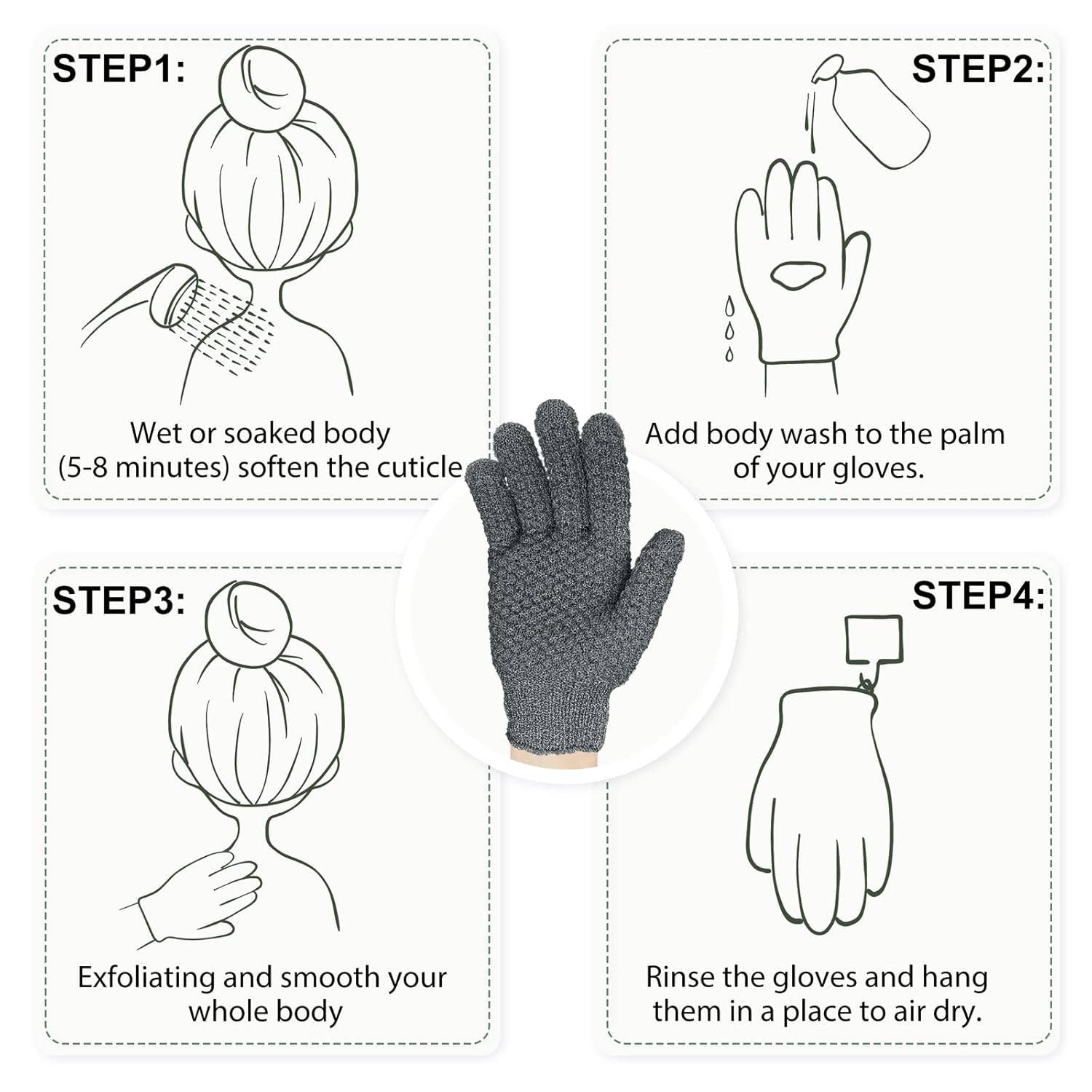 - Skin fresh: use these exfoliating gloves to gently and effectively exfoliate layers of dead skin and impurities from the body’s surface. Lather up with your favorite bath shower gel or soap