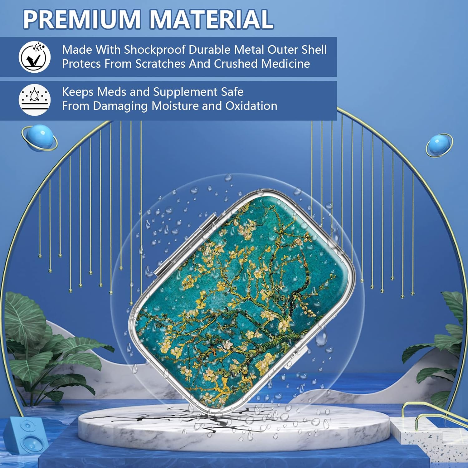 - Elegant and Practical: Each pill box features a beautiful illustration, merging form and function effortlessly. This design enhances your daily routine, infusing a bit of art into your lifestyle and making the experience of taking medication feel more distinctive