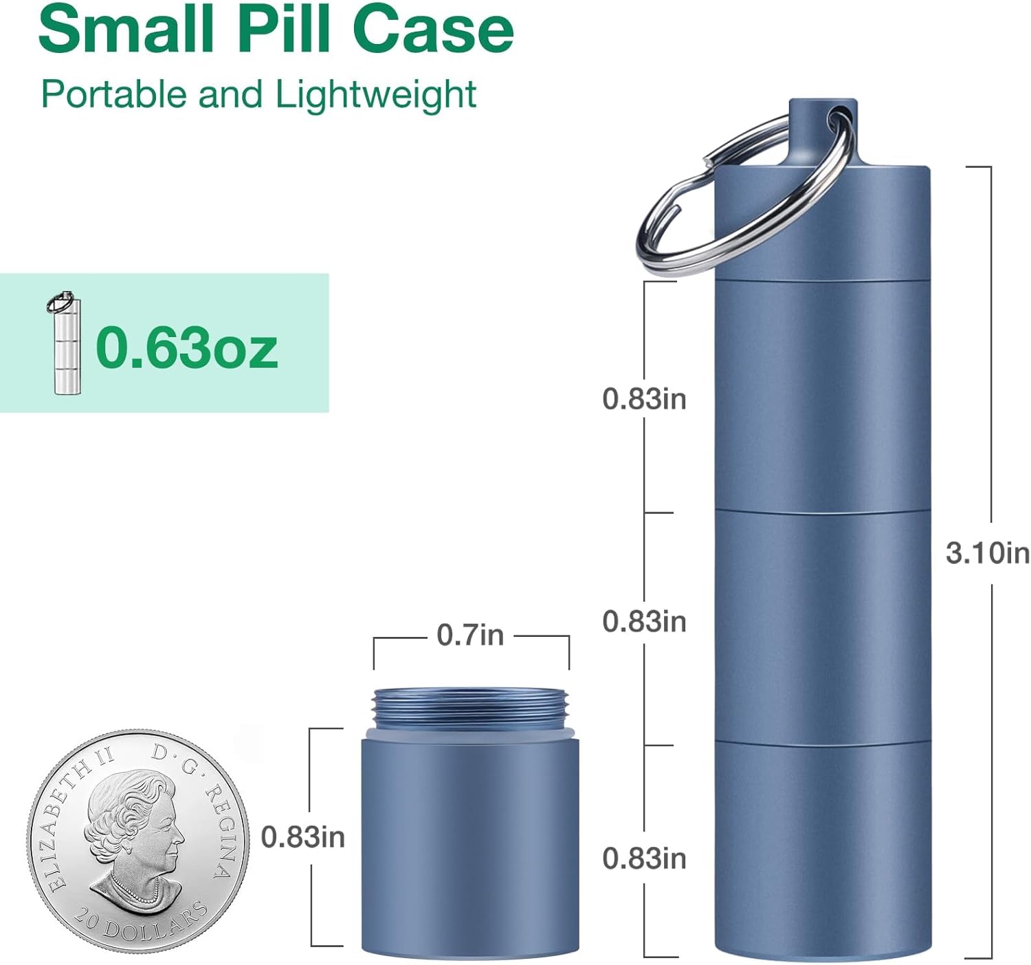 Opret Keychain Pill Holder, 3 Compartments Metal Small Pill Case, Waterproof Portable Travel Pill Box, Pill Container for Purse (Blue)