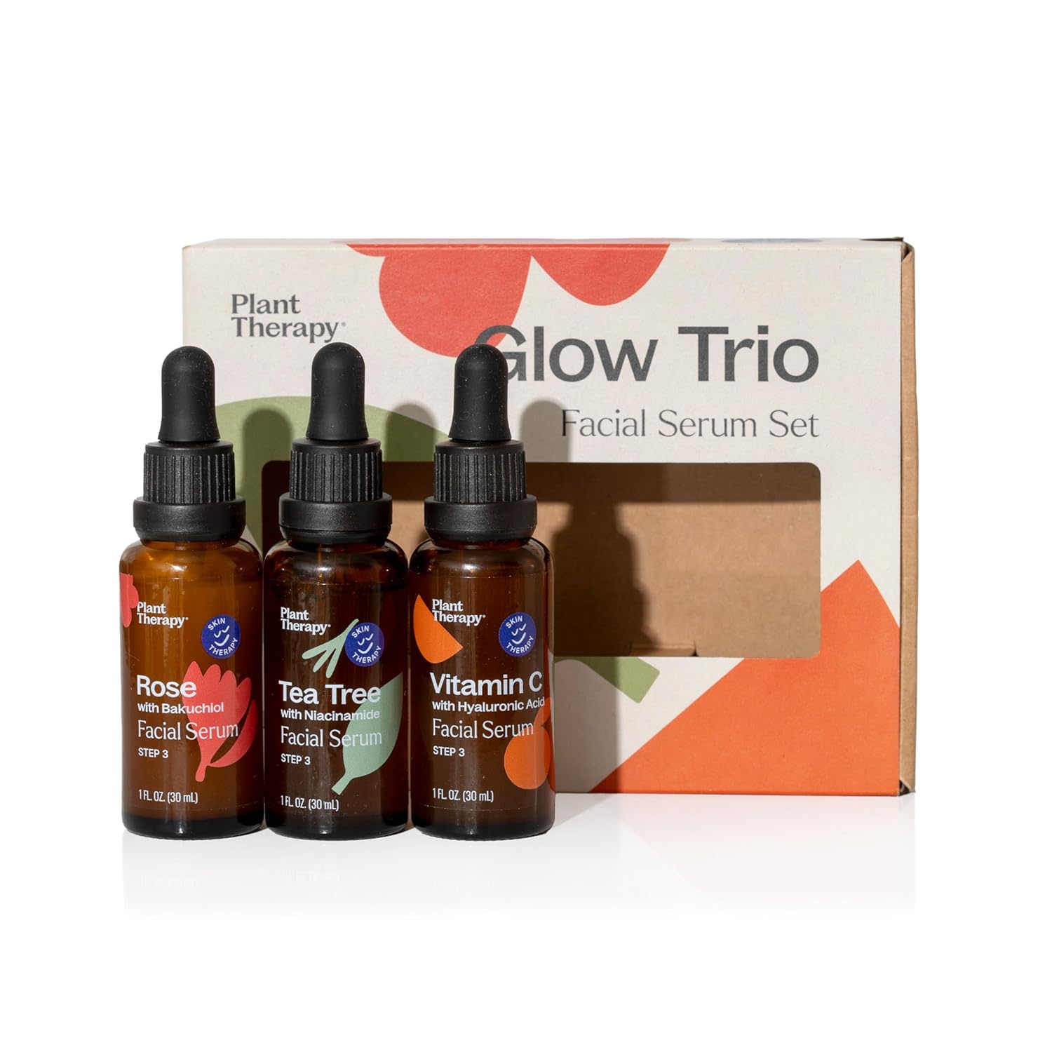 Plant Therapy Facial Serum Trio Set 1 oz each, Vitamin C & Hyaluronic Acid, Rose with Bakuchiol & Tea Tree with Niacinamide, Reduces the Appearance of Fine Lines & Wrinkles