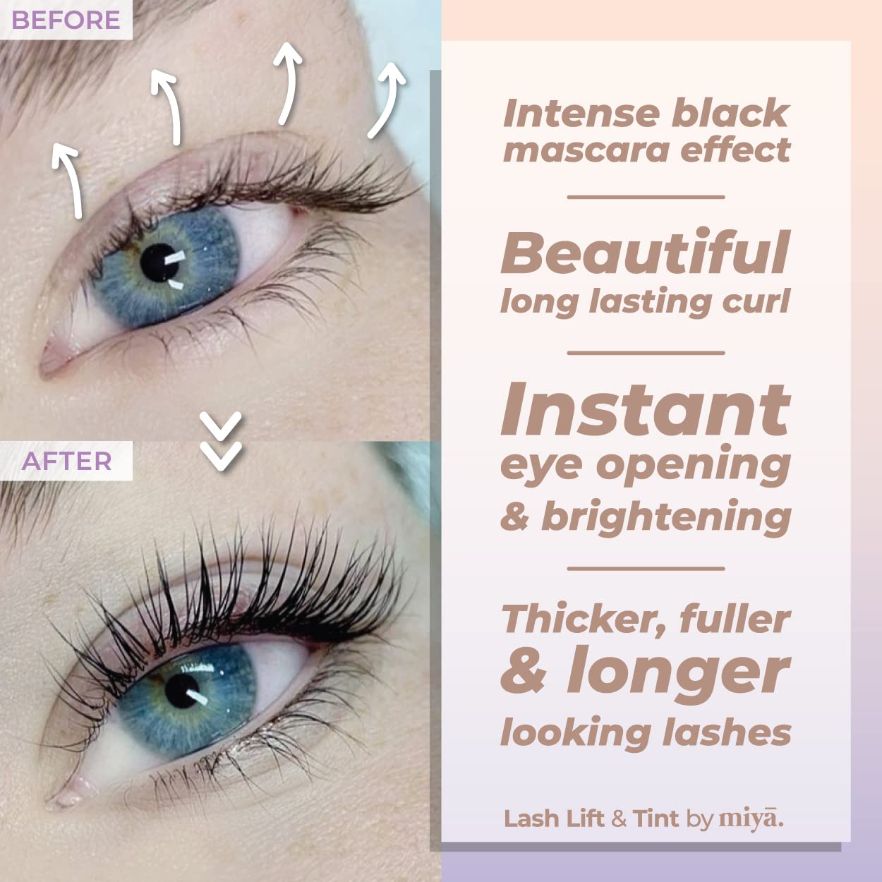 - ๐ฆ MAKE YOUR EYES SPARKLE WITH MIYA EYELASH PERM KIT (AKA LVL, Lash perming, Curling) โ Lifting and curling your natural eyelashes will enhance their definition and make them appear darker, thicker and fuller. Say goodbye to the traditional lash curler, mascara and the expensive eyelash extensions. The Miya Lash lift kit is a semi-permanent, gentle solution to give your lashes the oomph they need! Your beautiful lifted lashes will stay with you for up to 6 weeks and maintenance free!