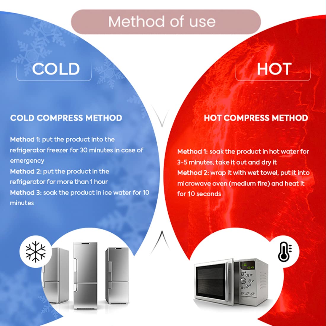 - ๐ใHOW TO USEใ - Heat in microwave or hot water for 10 seconds for heat therapy; Chill in freezer for at least 2 hours for cold therapy, and let stand for a few minutes before use. Notice: Do not use on the same part for longer than 20 minutes.Lie down when using the ice pack to avoid falling off.