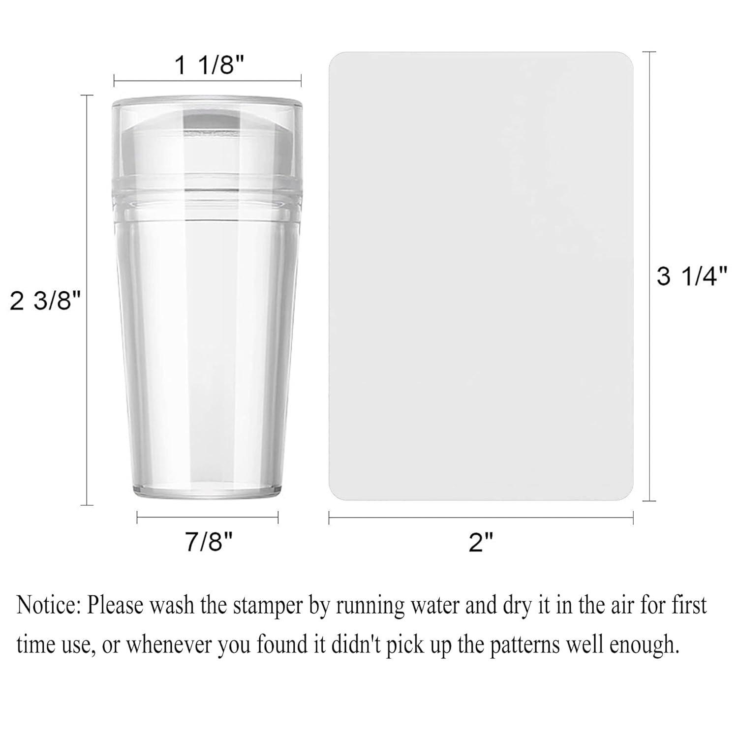 - Nail stamper plate kit for nail art design, you will get 6pcs nail stamping template, size 12*6cm. 1* clear stamp and plastic scraper. Great manicure tools for nail salon and home nail art designer
