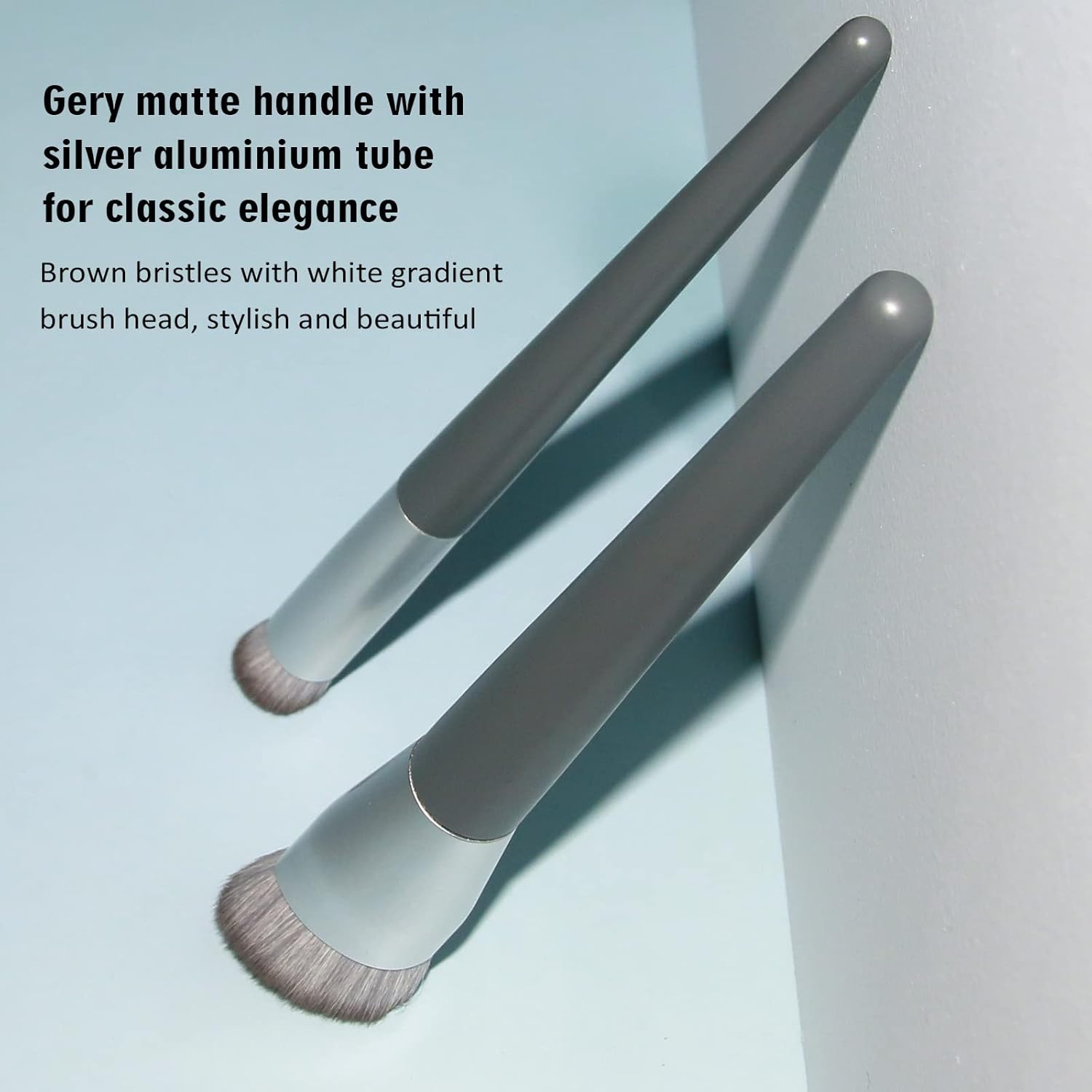 - ๐[Exquisite Craftsmanship and Design ]: Brochas de maquillaje profesional is made of synthetic bristles and precision-cut brush heads, which is very soft, dense, firm and ultra soft. Smoky gray wooden frosted brush texture handle with silver matte aluminum tube, low-key luxury, stylish and beautiful, easy to use. You will grow glowing with our makeup brush.