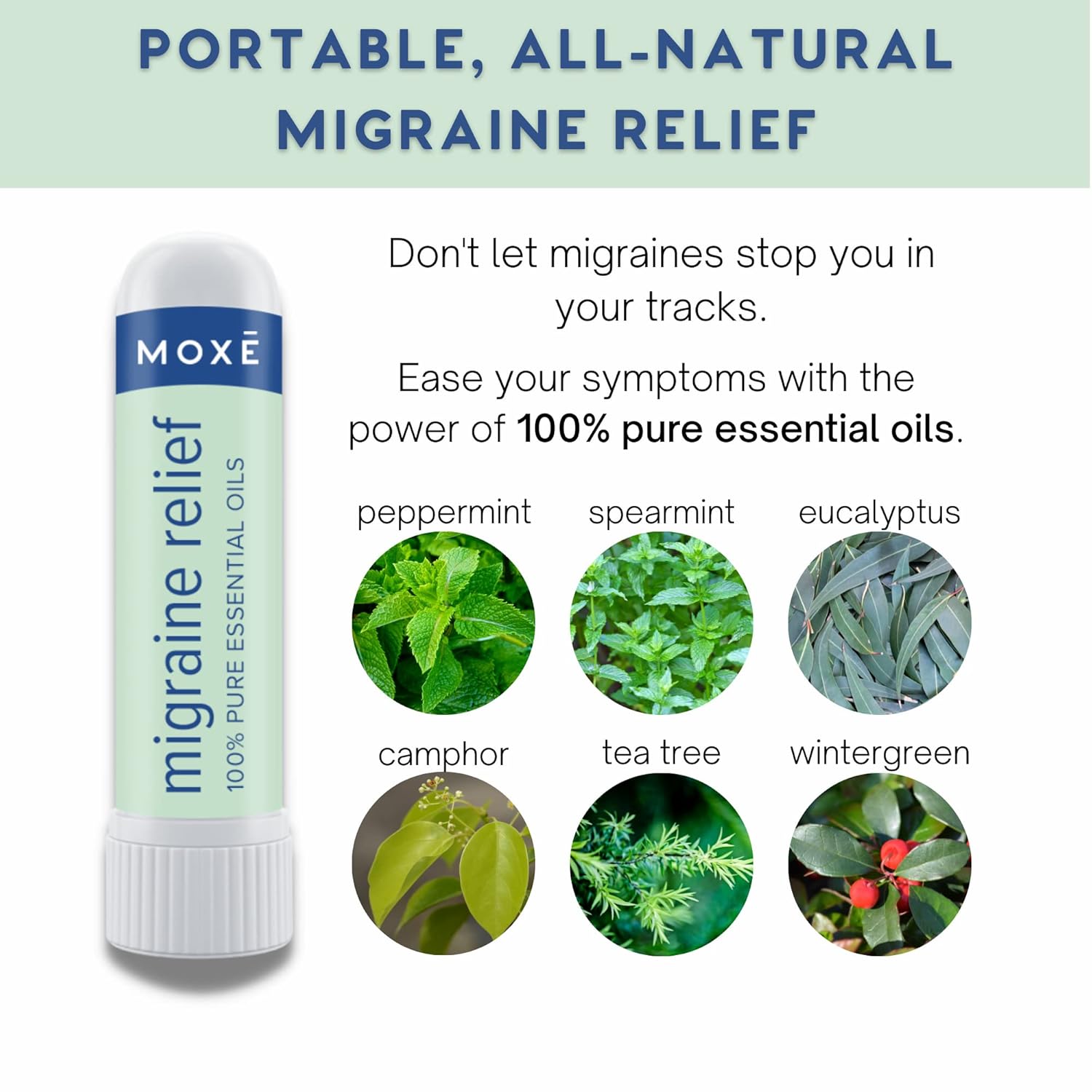 MOXE Migraine Relief Nasal Inhalers, Essential Oils for Headaches & Tension Relief, Portable Aromatherapy, Easy-to-Use, Pure & Undiluted, Peppermint, Spearmint, Eucalyptus, Tea Tree, USA Made, 3 Pack