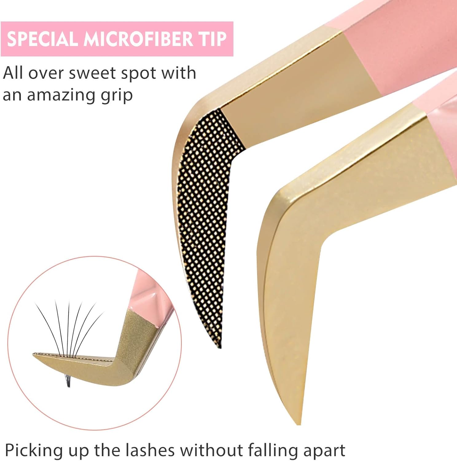- ★Fiber Tip Boot Tweezers:Specifically designed with a microfiber tip Special microfiber tip—All over sweet spot with an amazing grip, picking up the lashes without falling apart.
