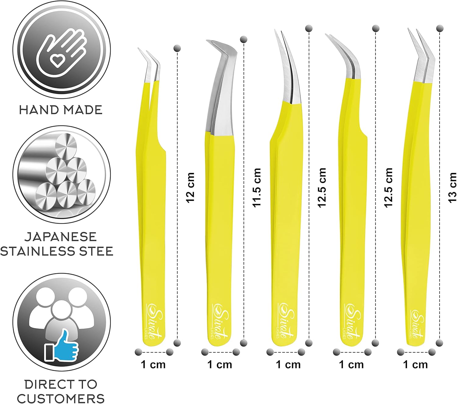 SIVOTE Eyelash Extension Tweezers for Classic & Volume Lashes, 5-Pack, Yellow