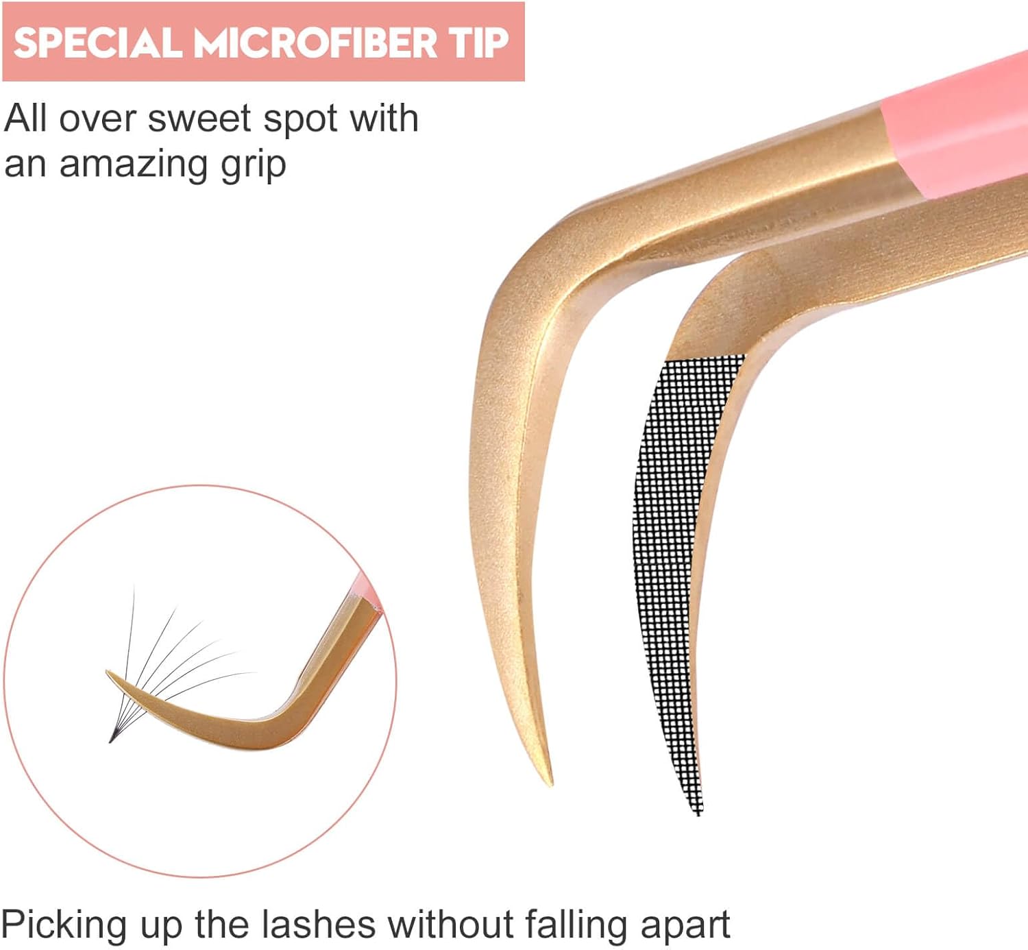 - Fiber Tip Lash Tweezers:Specifically designed with a microfiber tip Special microfiber tip—All over sweet spot with an amazing grip, picking up the lashes without falling apart