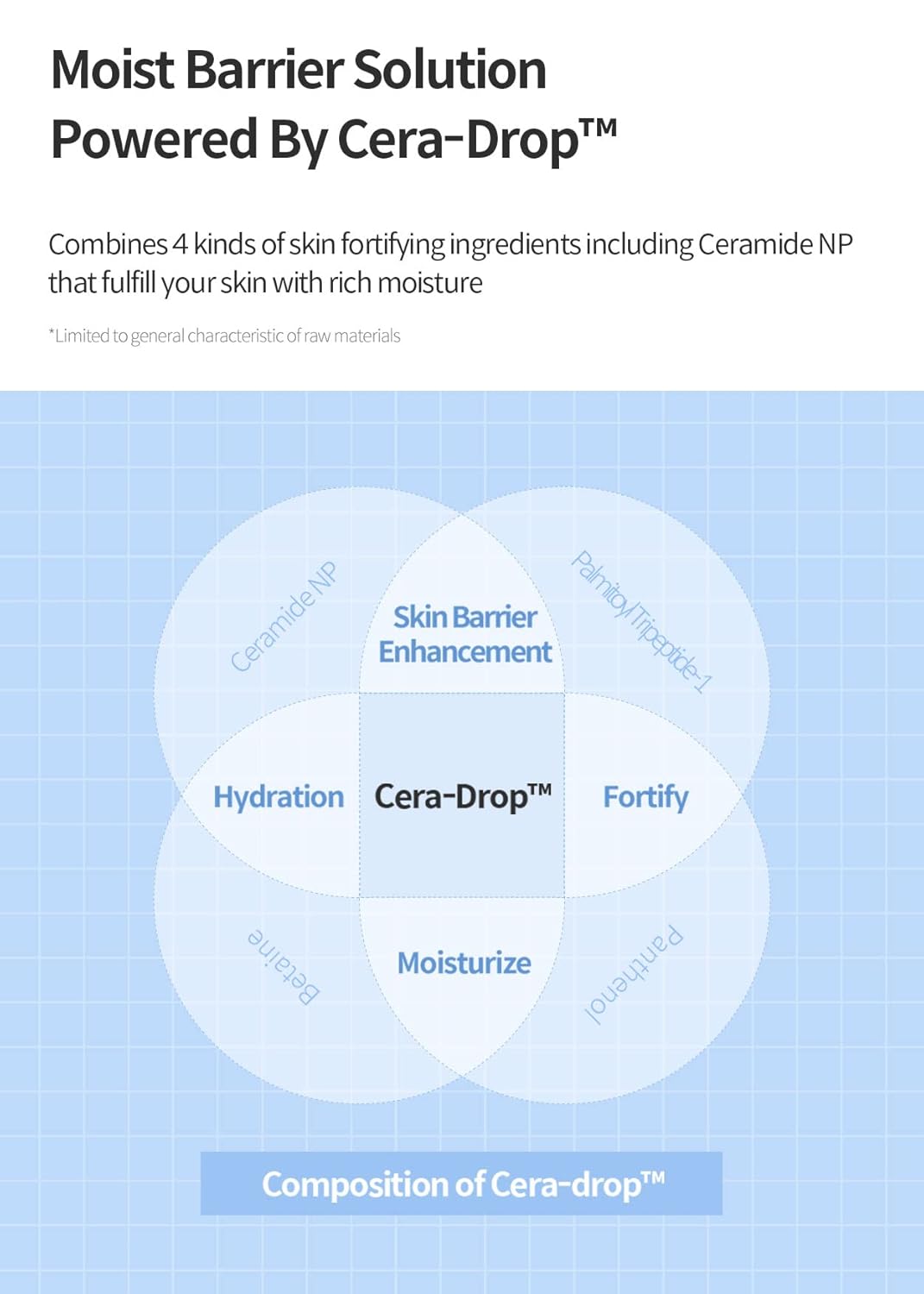 - ADVANCED CERA-DROP RESTORATION. Unleash radiant skin with this hydrating moisturizer facial lotion featuring Cera-Drop, which includes Panthenol for enhanced moisture, Betaine to strengthen the skin barrier, Ceramide NP for moisture balance, and Palmitoyl Tripeptide-1 for improved elasticity and fine line reduction.