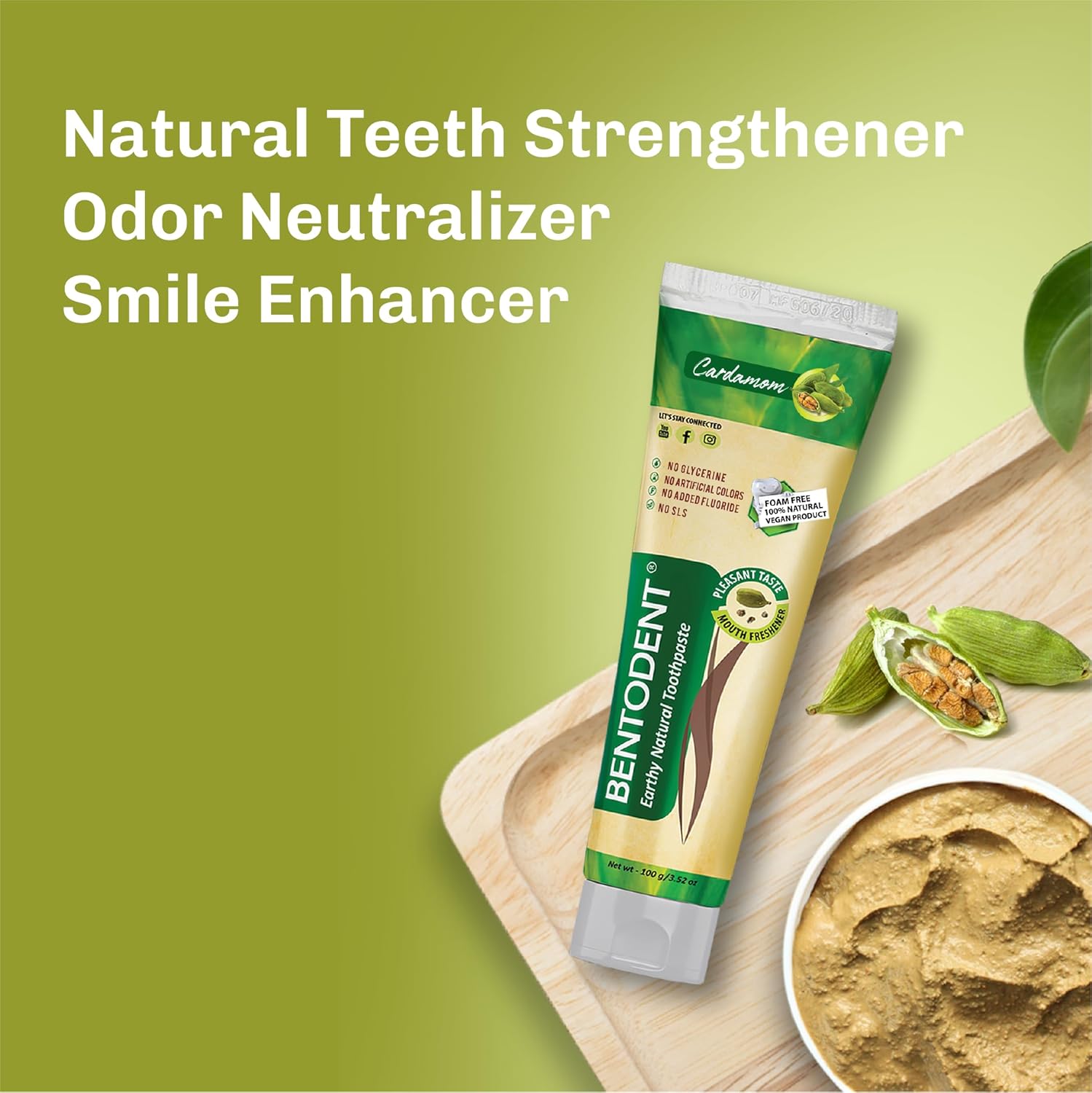 - 🌿 World's First Fusion: Bentodent Sensitive Remineralizing Fluoride free Natural toothpaste proudly introduces the world's first toothpaste combining the natural detoxifying properties of Remineralizing calcium bentonite clay with the aromatic power of cardamom. A pioneering blend designed for the discerning individual seeking both efficacy and an unparalleled natural experience.