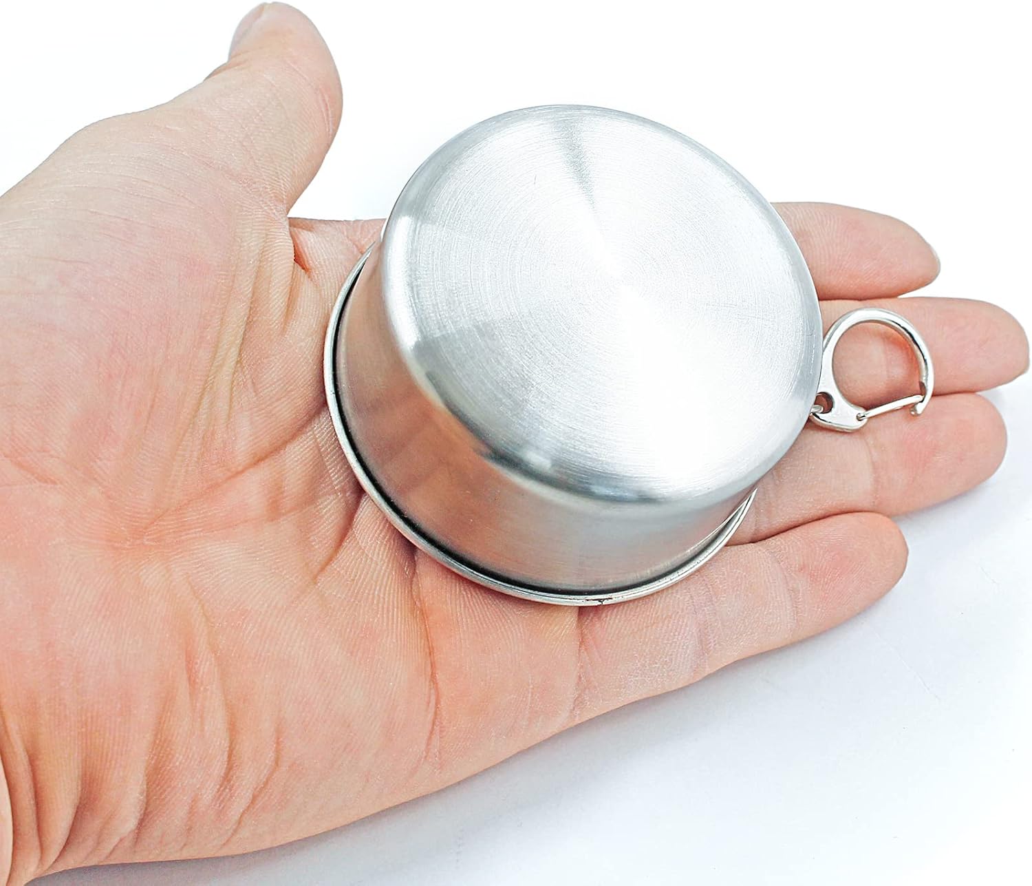 Litoexpe 5oz Collapsible Travel Cup With Keychain, Stainless Steel Folding Camping Cup Portable Drinking Mug For Hiking, Picnic and other Outdoor Activities, 150ml