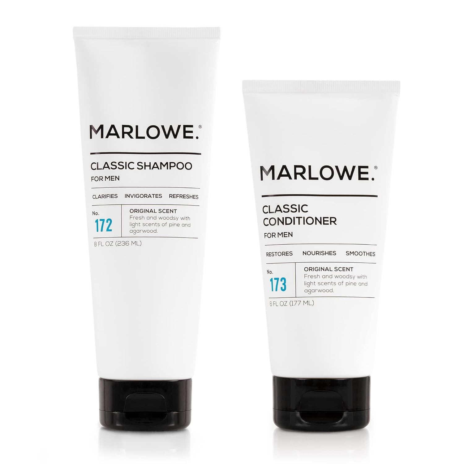 MARLOWE. Men's Shampoo and Conditioner Set, No. 172 Shampoo 8 oz & No. 173 Conditioner 6 oz, Moisturizing Argan & Coconut, Fresh Woodsy Scent, All Hair Types