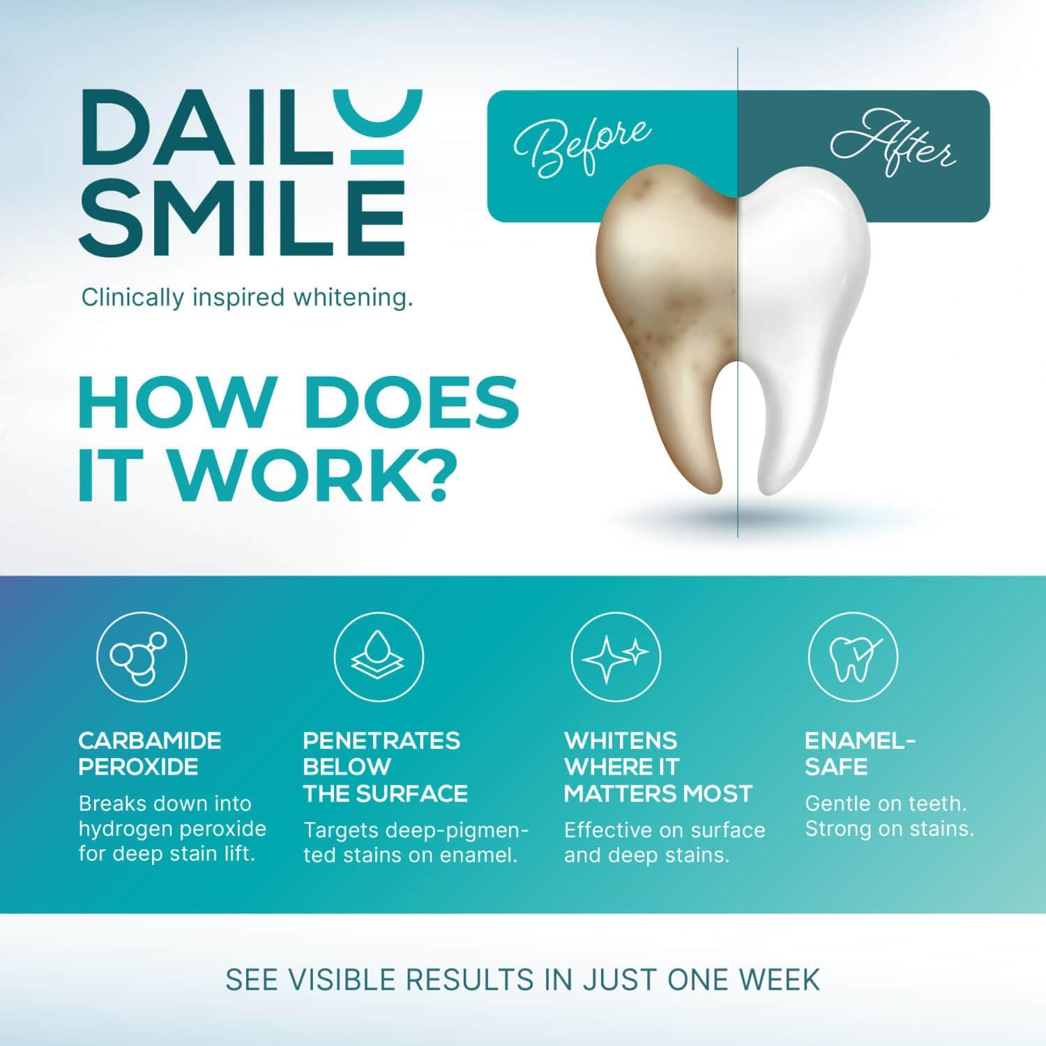 - SAFE FOR SENSITIVE TEETH: Formulated for sensitivity, Dailysmile teeth whiteners are gentle on enamel while still targeting tough stains. Enjoy a pain-free teeth whitening experience with no irritation - no compromises.