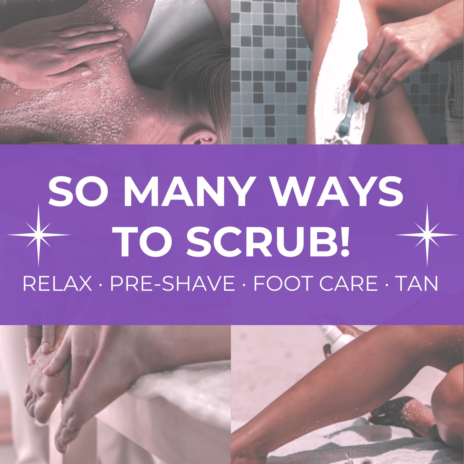 - EMBARK ON A LAVENDER ESCAPADE, enhance your spa routine, pre-shave ritual, foot pampering, or pre-tanning regimen with our Lavender Body Scrub. Experience the mesmerizing blend of lavender essence, shea butter, and coconut oil for a fragrant journey to a serene countryside.