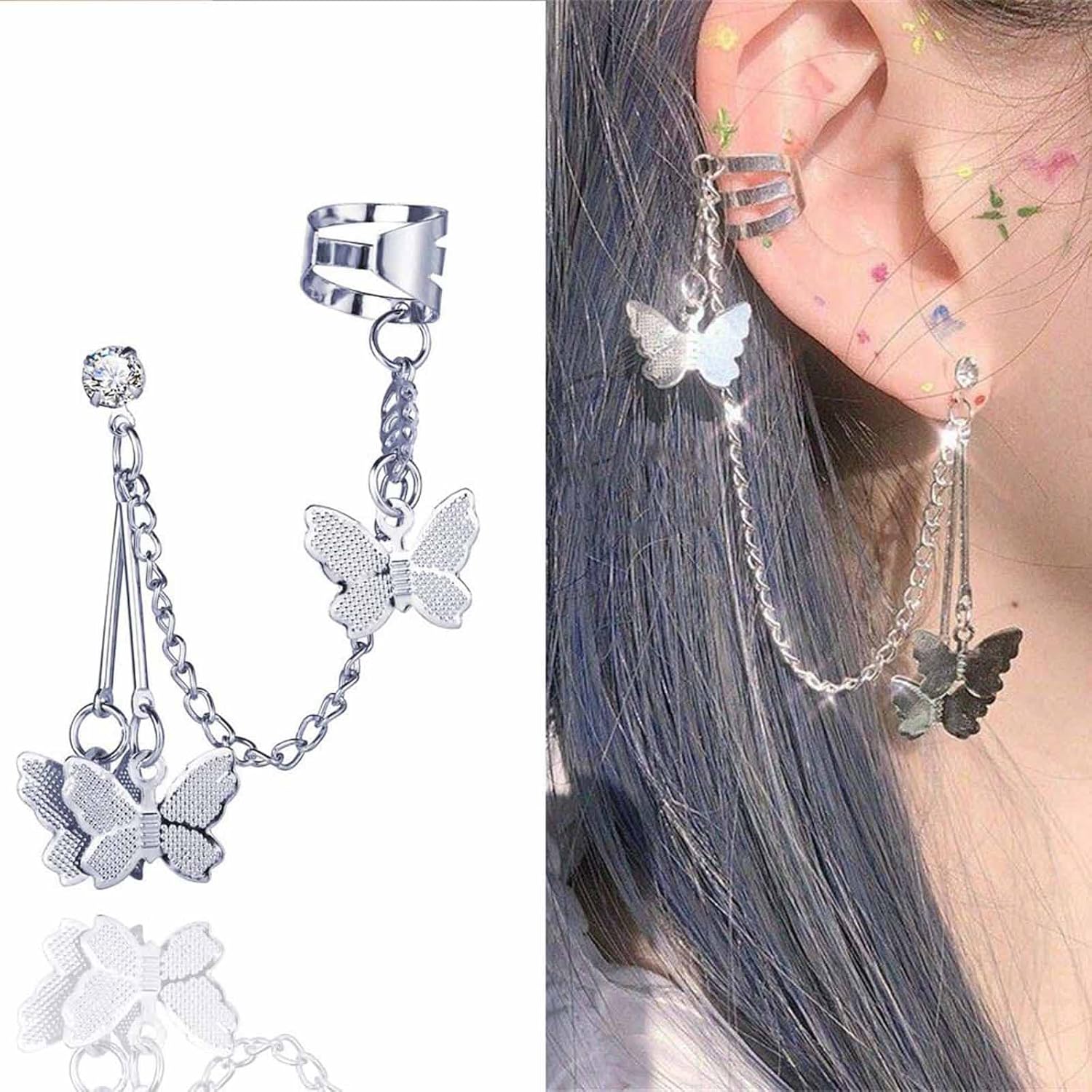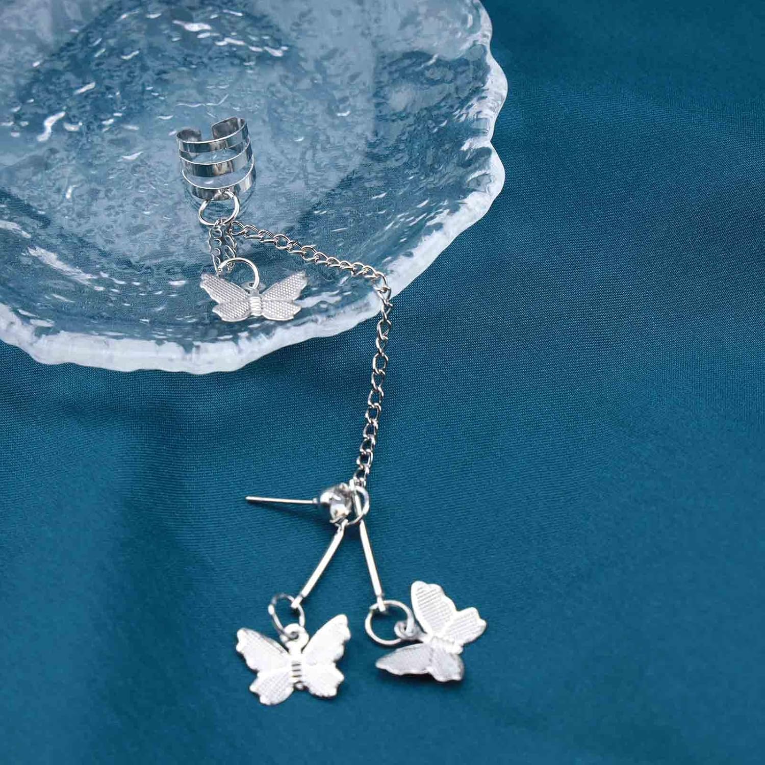 - 【Unique Design】This is a fashionable bridal butterfly cuff earrings, butterfly dangle earrings, nightclub party earrings are very popular with girls.