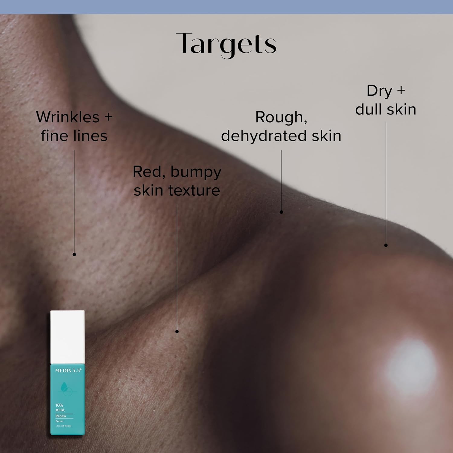 - BOOSTER – Supercharge your regular skin care routine by adding this highly effective + concentrated 20% AHA Exfoliating Glycolic Acid Renew Booster Serum formulated to be combined with your favorite Medix 5.5 body moisturizer treatment cream, but can also be added to your favorite body moisturizer, body oil, facial serum, face moisturizer, etc.