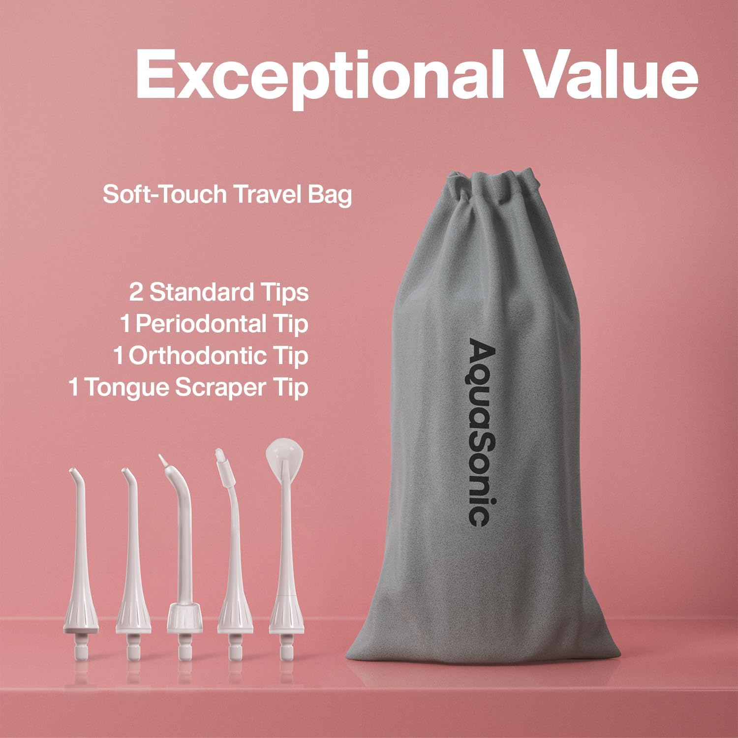 AquaSonic Water Flosser - Cordless Rechargeable Water Flossers for Teeth Cleaning - Waterproof Aqua Flosser, Portable Oral Irrigator for Dental Cleaning with 5 Jet Tips – Braces Home Travel