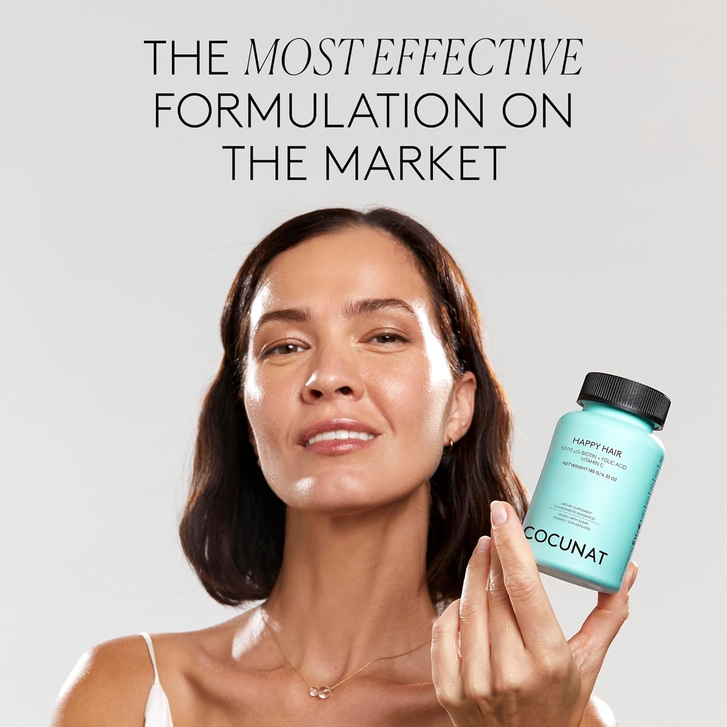 COCUNAT Happy Hair Growth Gummies for Women - Biotin 5,000 mcg Hair Vitamins - Helps Reduce Shedding & Thinning - Vegan Hair Skin & Nails Supplement with Folic Acid, Zinc, Vitamins A–E - 60 Gummies