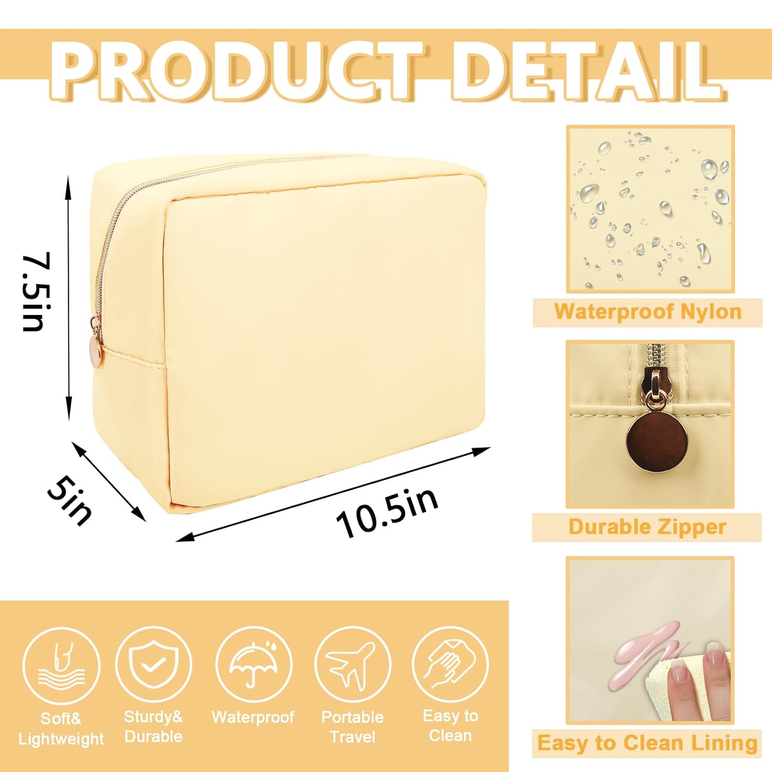 Large Makeup Bag Pouch,Nylon Women Travel Toiletry Storage Bag Preppy Cosmetic Bag for Girls,Big Makeup Organizer Bag Cute Zipper Pouch Skincare Bag for Sport Work Gift(Large-Sand)