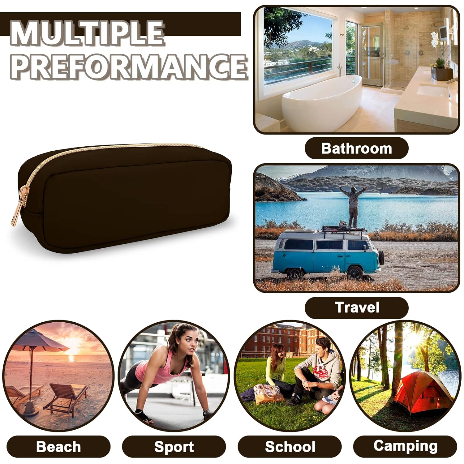 - 【Multi-purpose】The preppy makeup bag makes it easy to pack and carry cosmetics, jewelry, sanitary napkins, brushes, pencils, small electronic accessories, toiletries, medications, tools or other travel essentials. It's a great bag for school, travel, parties, camping, beach, gym, etc.