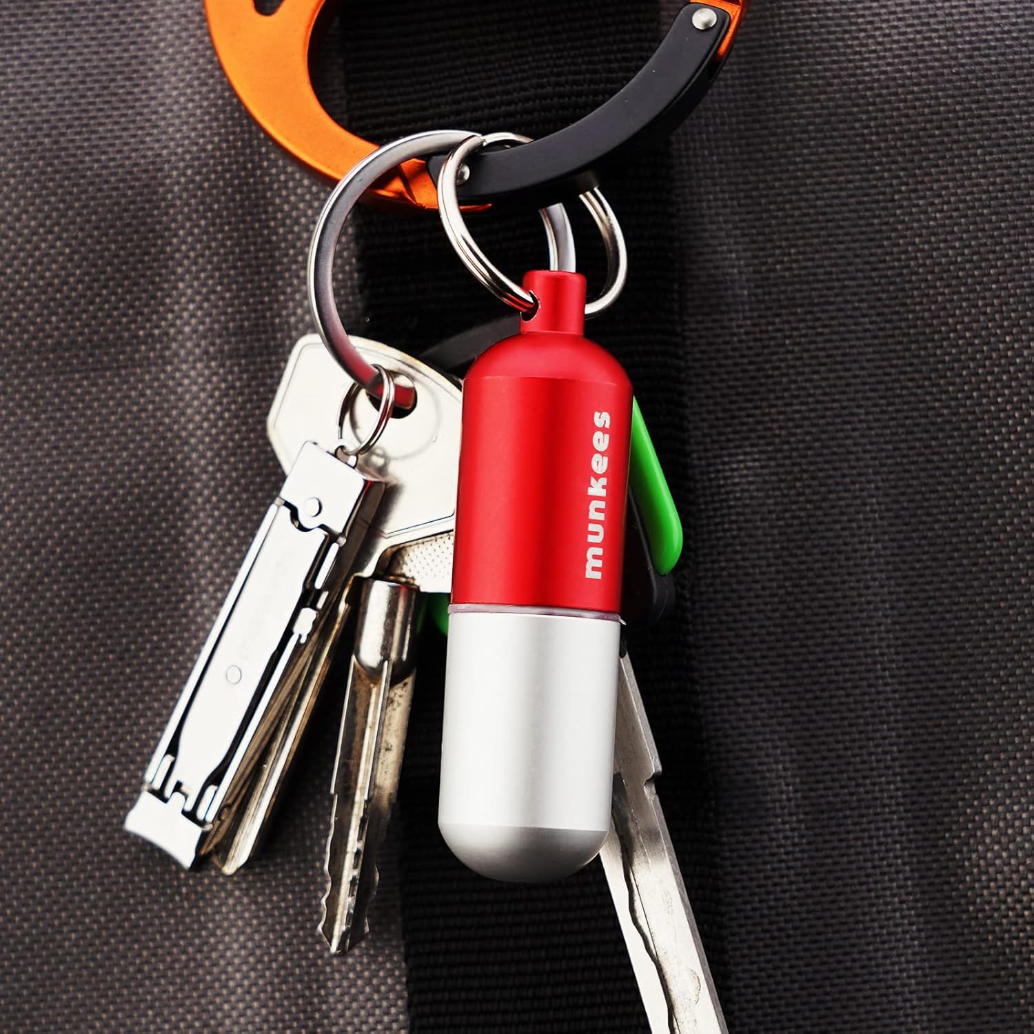 munkees Portable Pill Case Small Waterproof Capsules EDC Keychain, Travel Pill Bottle for Camping, Hiking, Backpacking, Compact Valuables Container for Outdoors 2-Pack