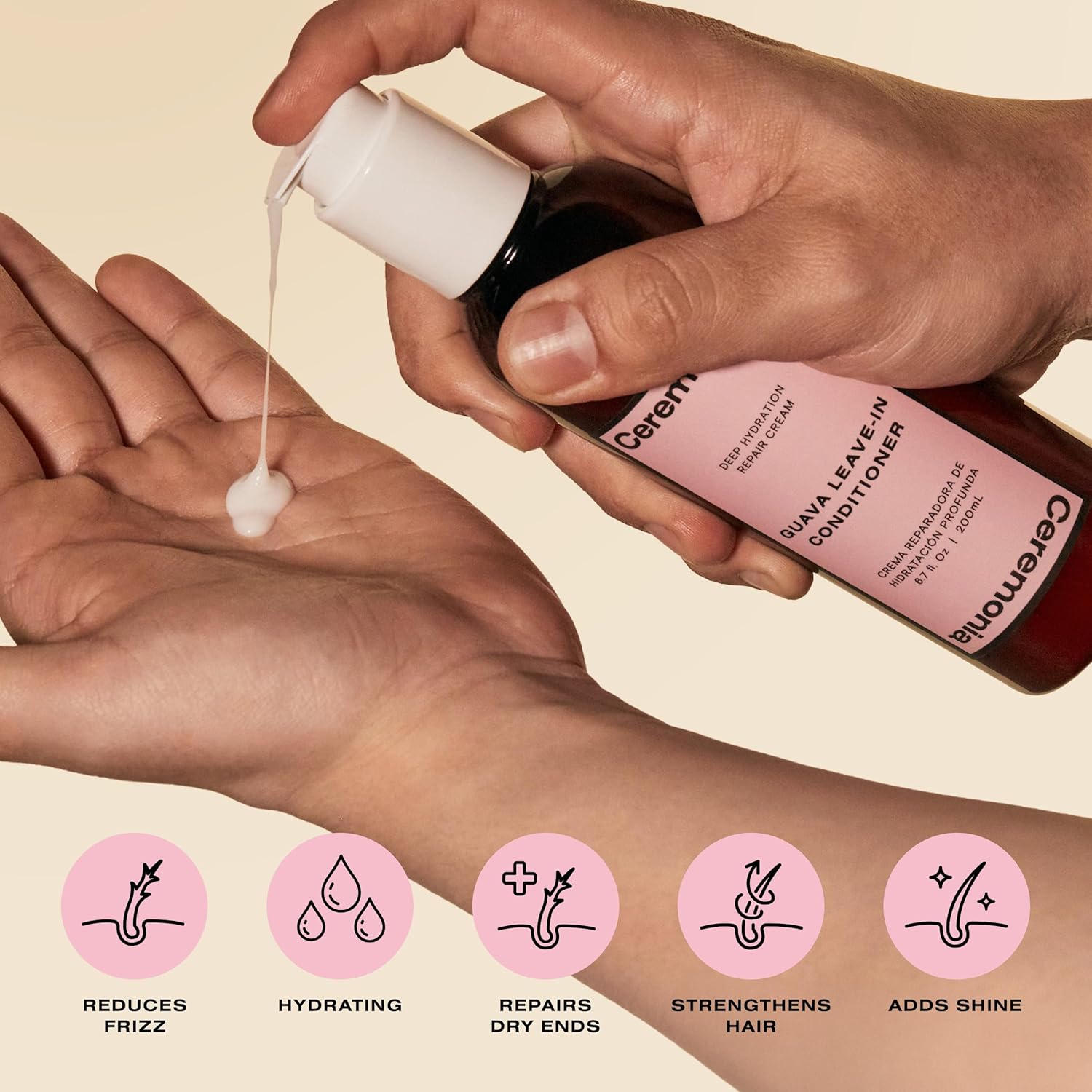 Ceremonia Guava Leave-In Conditioner Deep Hydration Repair Cream with Tamarind and Avocado, 6.7 Fl Oz | 200 mL