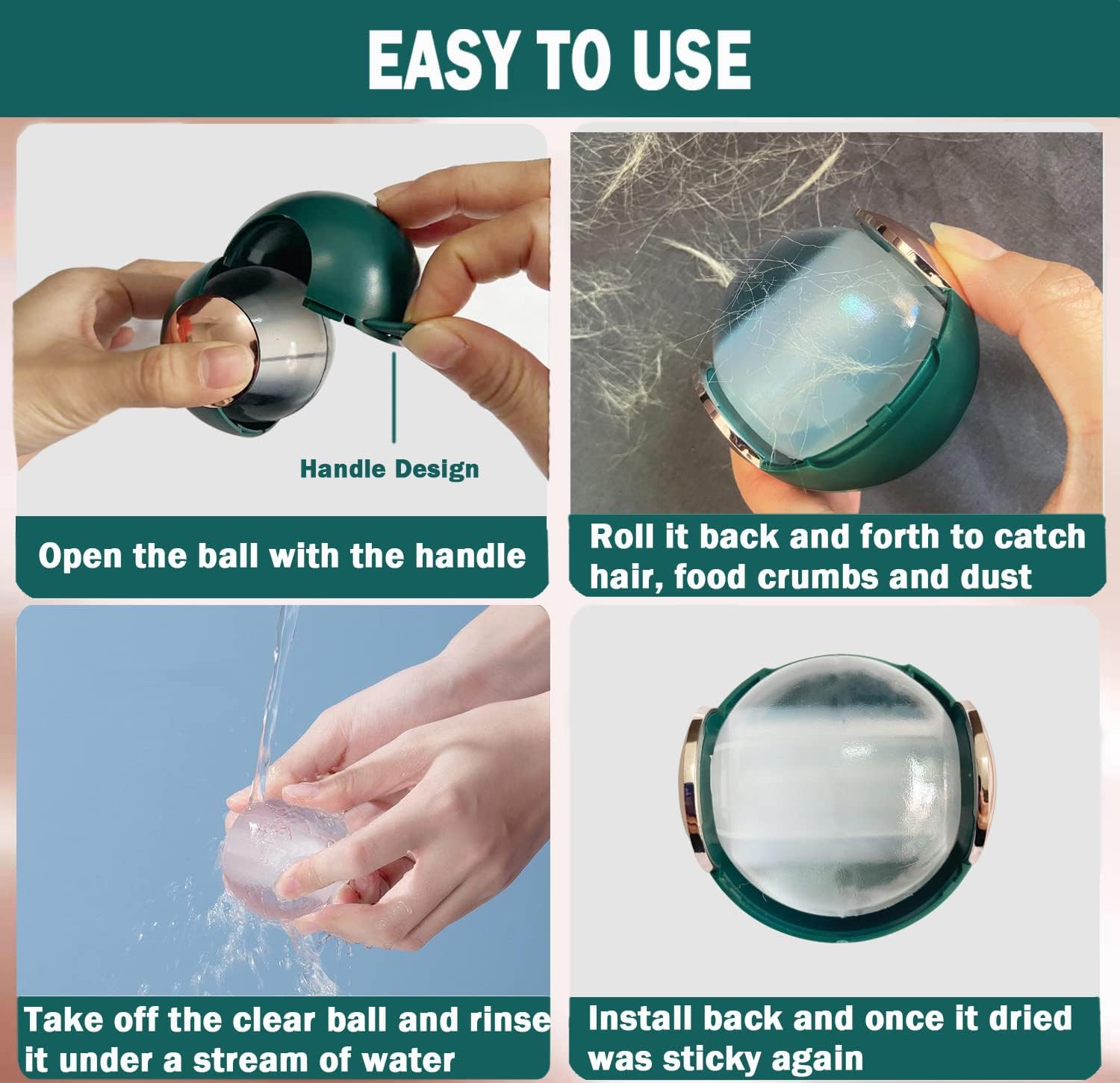 - Efficient and Practical: The sticky roller ball can easily removes pet hair and snack crumbs from clothes, furniture, sofas, sheets and carpets. Because of its special material and strong sticky, it can easily removes hair and snacks without damaging any clothes