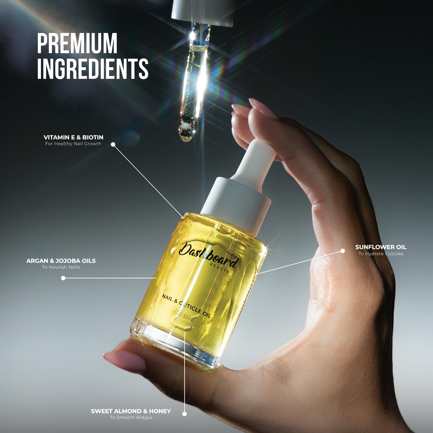 Dashboard Beauty Cuticle Nail Oil - Advanced Nail Moisturizer & Premium Nail Strengthener with Jojoba, Vitamin E - Repairs Damaged Nails, Nourishes, Enhances Growth - Salon-Grade, Deep Hydration, 1 oz
