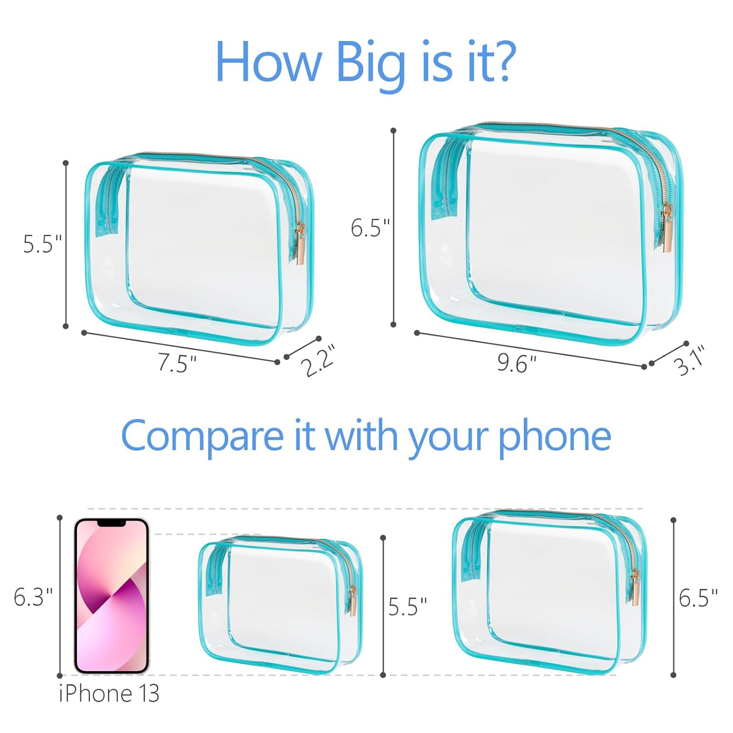 - TSA Approved: The 7.5 x 5.5 x 2.2 inch clear travel toiletry bag strictly follows TSA 3-1-1 liquids rule for carry-on bag of all airlines, so you can easily and quickly pass through security screening with it in the airport
