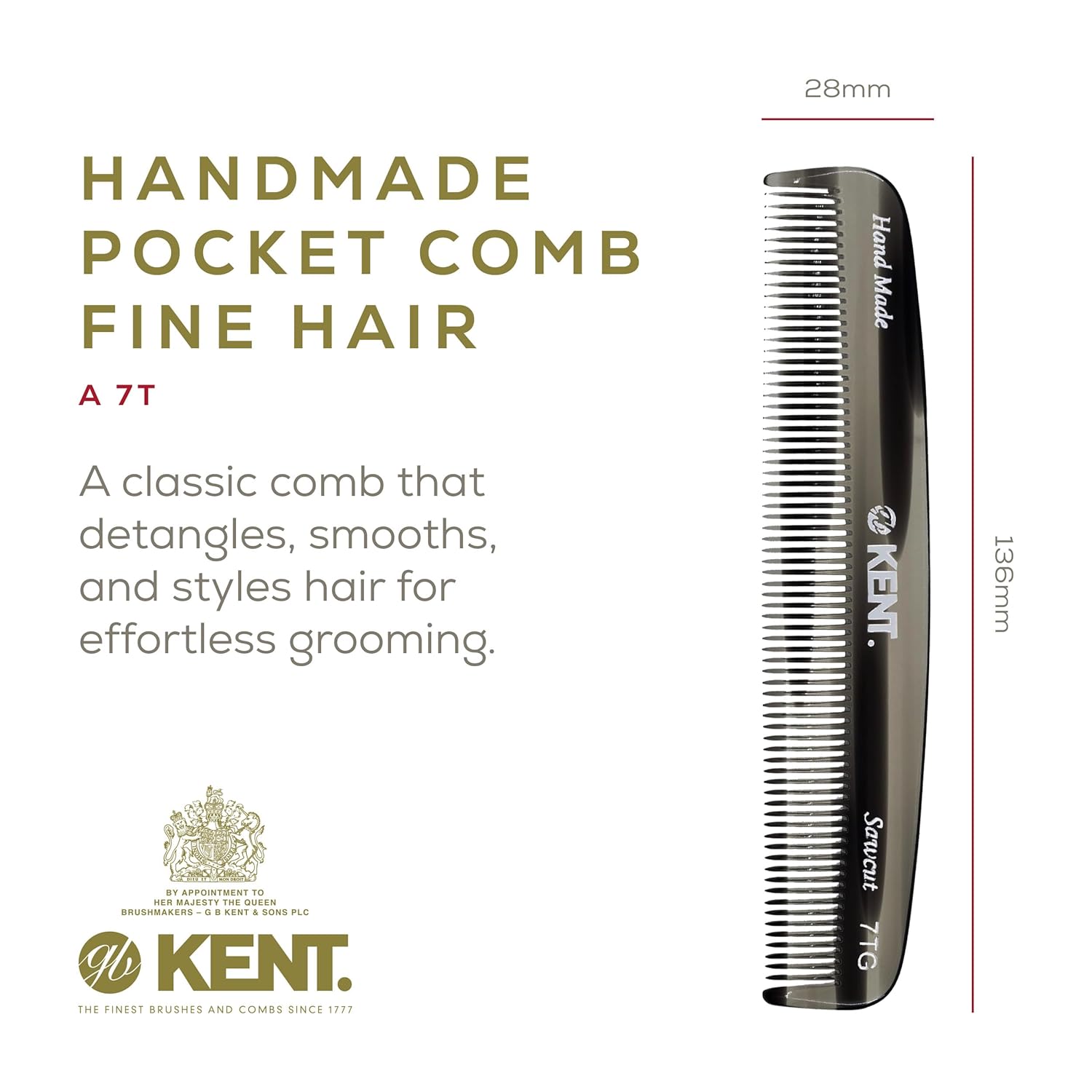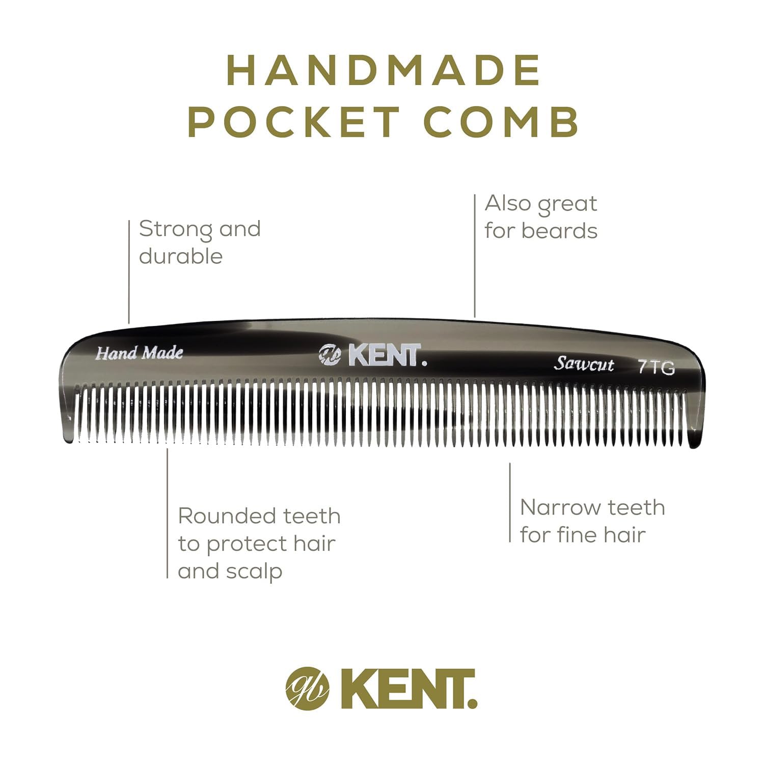 Kent 7T G All Fine Tooth Pocket Comb - Handmade Hair Grooming and Styling Comb for Travel, Mustache, Beard - Saw Cut and Hand Polished for Wet or Dry Use with Balms