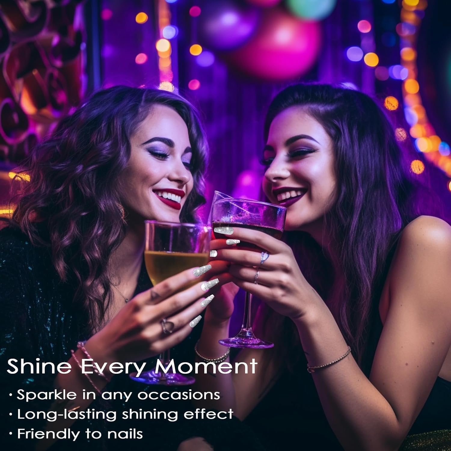 - Wide Applications: This nail glitter powder can be used over gel polish nails, press on nails, dip powder nails, extension builder nail. This loose glitter is so shimmery use it for french nail art, whole nail art, and doing some glittery lines for nails. The reflective nail charms is perfect to match your glitter rave outfit glitter makeup, glitter concert outfit. So beautiful for theme parties, festivals, Halloween, Christmas ,new year event, wedding, concert, stage show, dance competitions.