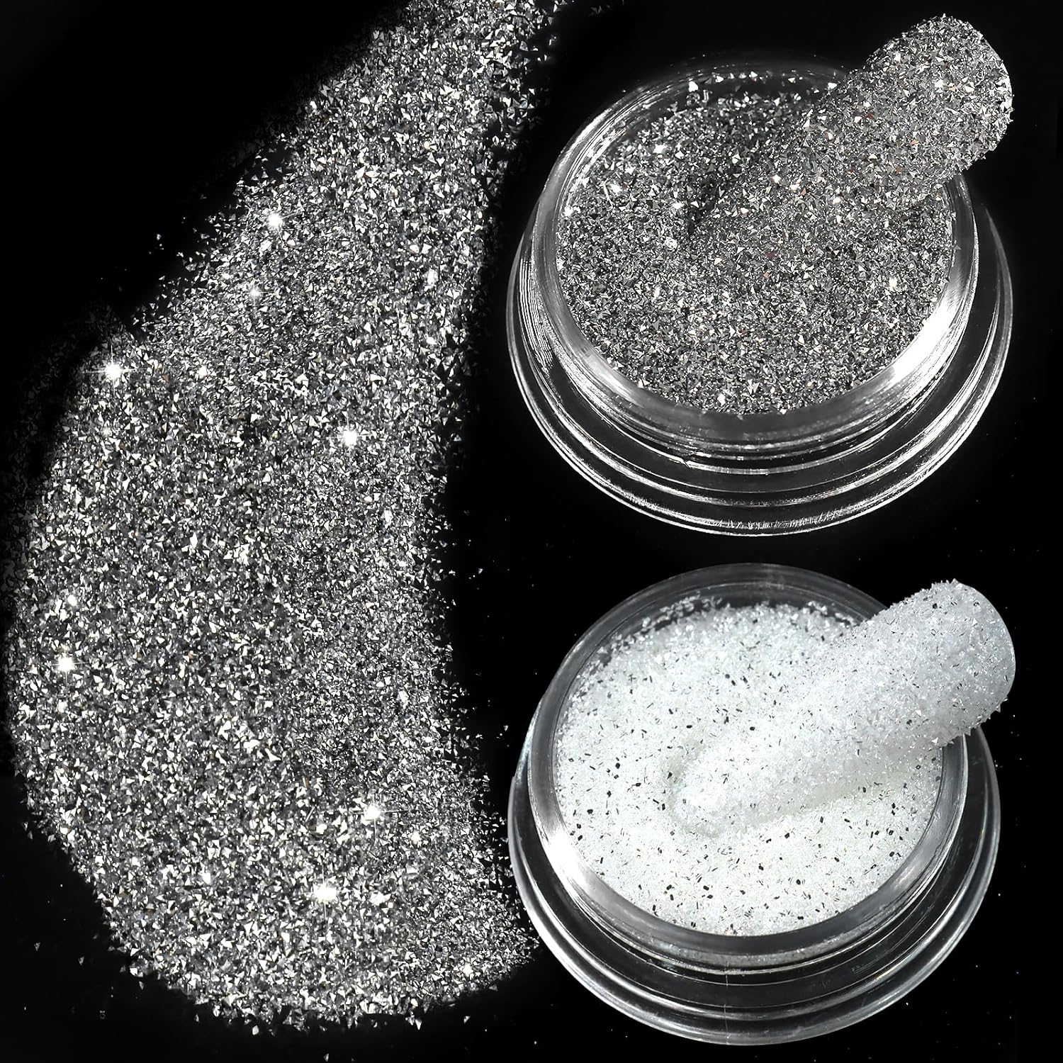Allstarry Nail Glitter, 2 Colors Sparkling Silver Reflective Glitter Shiny White Diamond Dust Shimmery Sequins Crystal Gems for Nail Art Disco Party Nightclub Raves Festivals Concert Shows Wedding