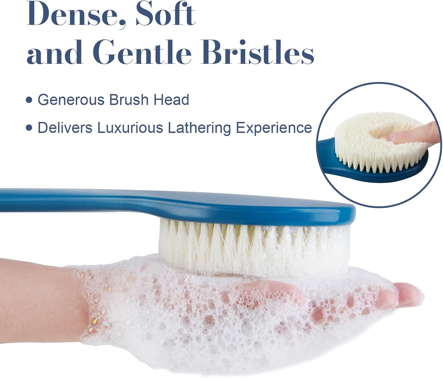 - EXTENED LENGTH OF REACH: To cater to its multi-functional role as a back brush for showering, we've upgraded the handle length to 17 inches, allowing you to effortlessly cover hard-to-reach areas like your back, lower legs, and feet without bending over. This feature proves particularly valuable for individuals with limited shoulder mobility or difficulty in bending their waist. Additionally, its slight curvature enhances ease of use with every stroke.