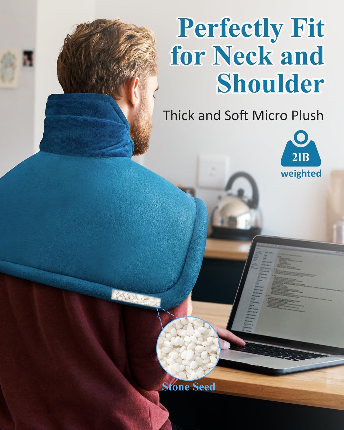 - Ideal Design for You: Our Errorless 2lb weighted heating pad with stone seeds edge and evenly distributed coils lets you enjoy all-around warmth within 30 seconds. The 17" x 23" shoulder heating pads conform to the curve of the neck and provide comprehensive and comfortable coverage. Great for personal use to reduce daily fatigue, and unique gifts for women men