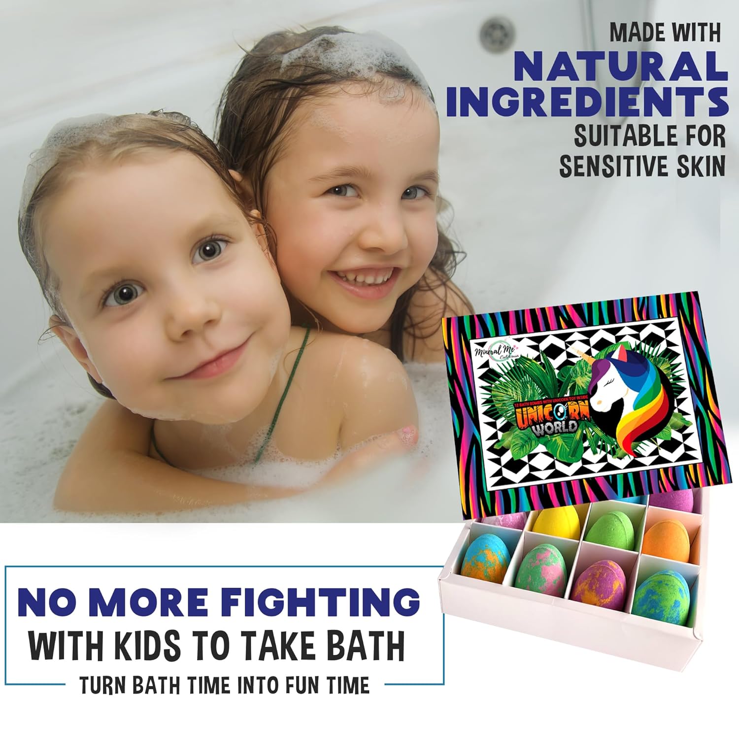 Mineral Me California Unicorn Bath Bombs for Girls with Jewelry Inside - Organic Bath Bombs for Kids with Surprise, Natural, Skin Moisturizing BathBombs, Rainbow Bubble Bath. Birthday Gifts - 12 pk