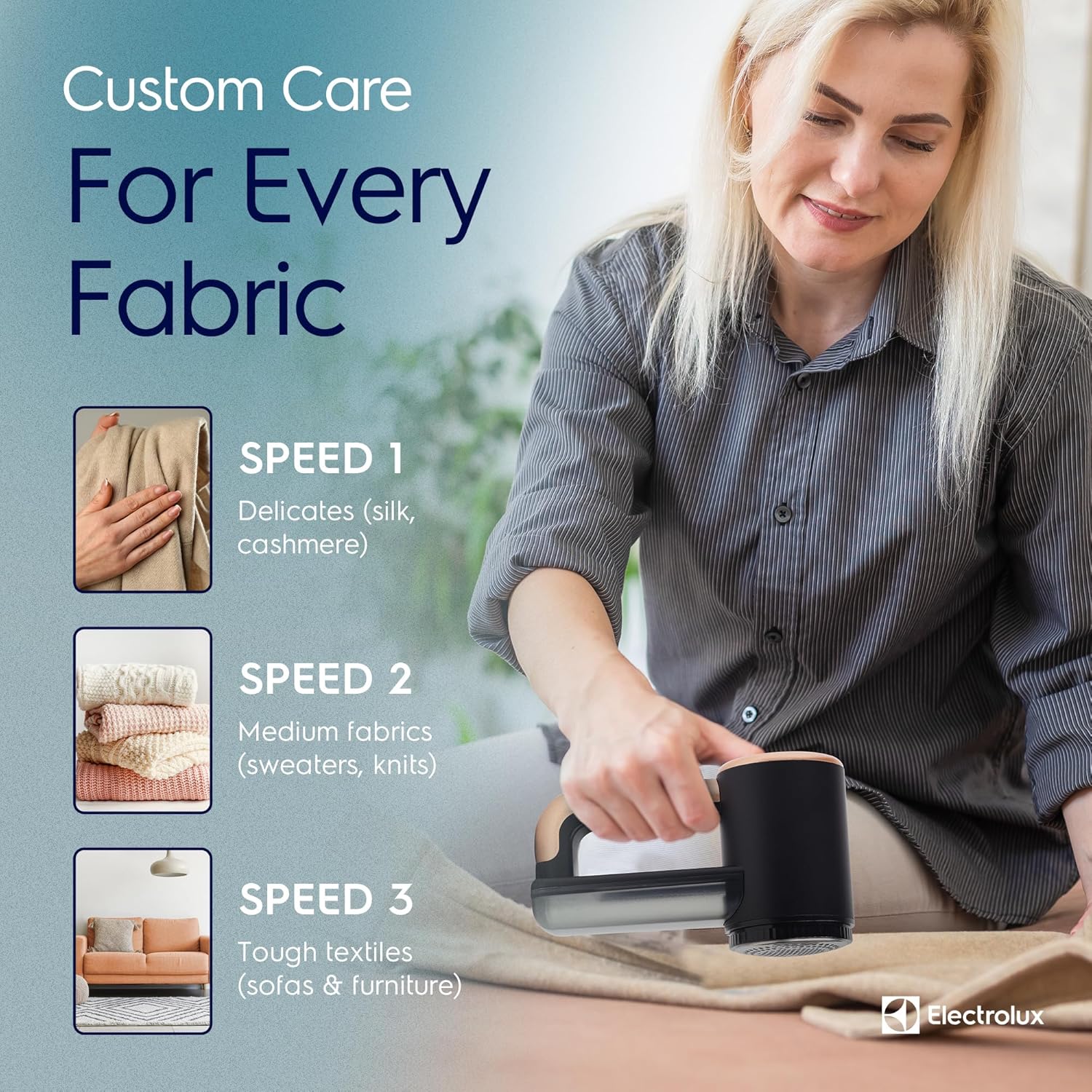 Electrolux Rechargeable Fabric Shaver | 3-Speed Lint Remover for Clothes & Furniture | Eliminates Fuzz & Pilling | Electric Lint Shaver with LED Display & Type-C Fast Charging Port - Black