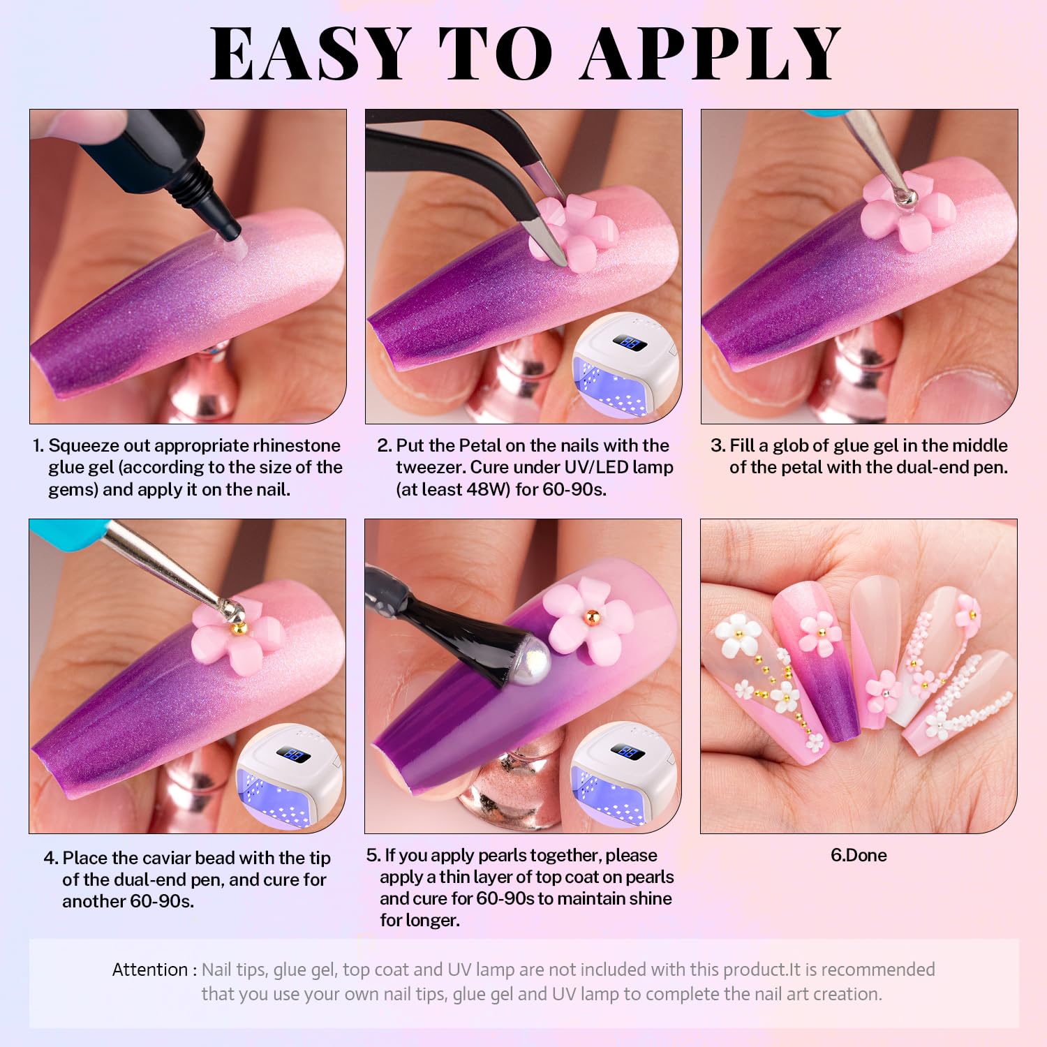 - ๐NAIL ART BEAD -- You will receive 2 boxes of nail art decorations. Box 1: 3D resin flatback flowers in pink color and white color combined with metal beads. Box 2: mixed nail art accessories. The functional Tools for nail design are also attached, including 1pcs dual-end brush & dotting pen, 1pcs pick-up pen, and 1pcs tweezer.