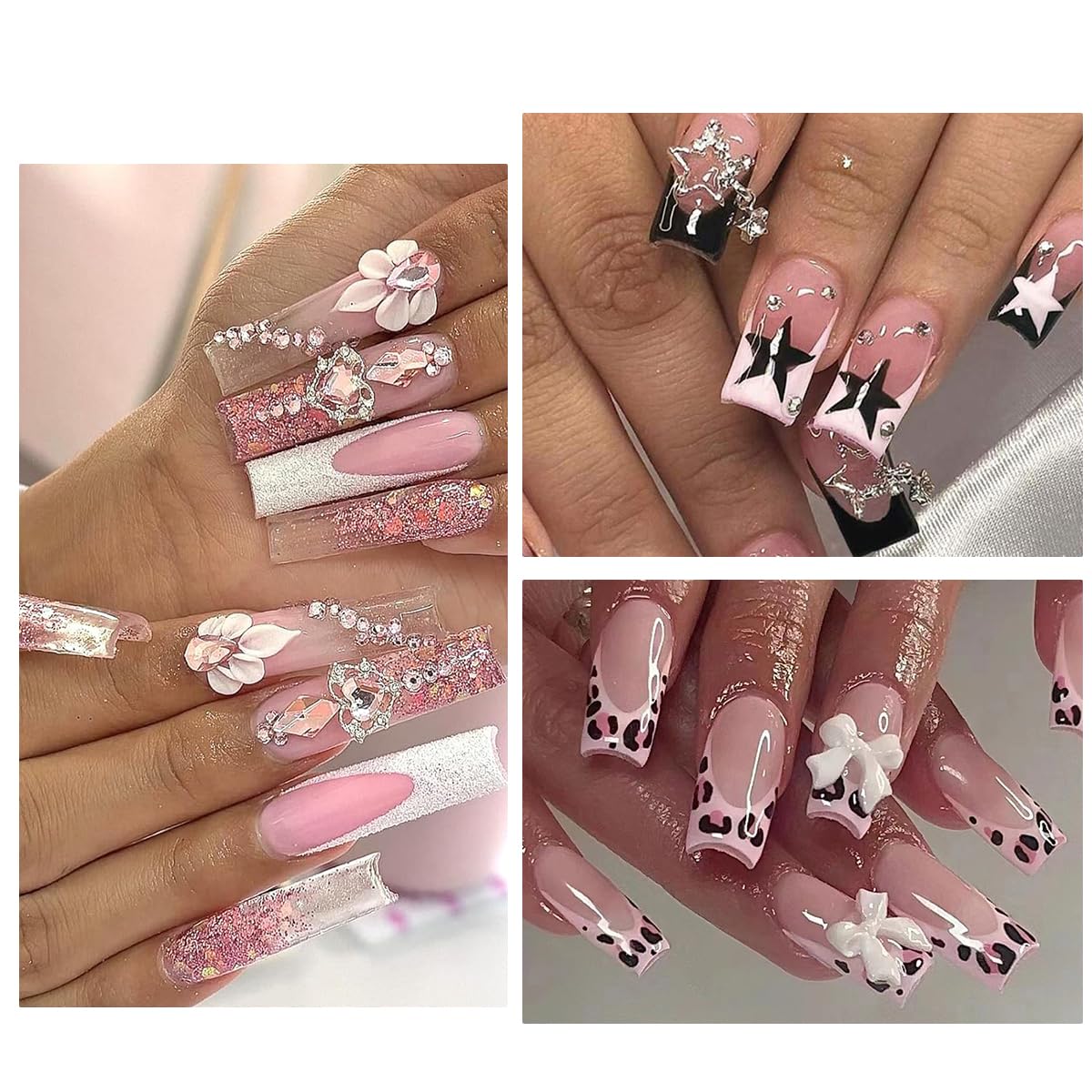 - You will get 50pcs nail charms in 10 shapes(Gun, Lip, Heart Planet, Girl's Head, Bow, Kitty, Heart, Star) , metal base with inlaid rhinestone, very shiny and unique. Perfect to make endless possibilities for anything from minimalist to dramatic nail art.